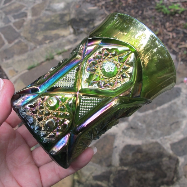 Antique Cambridge Double Star Green Carnival Glass Tumbler