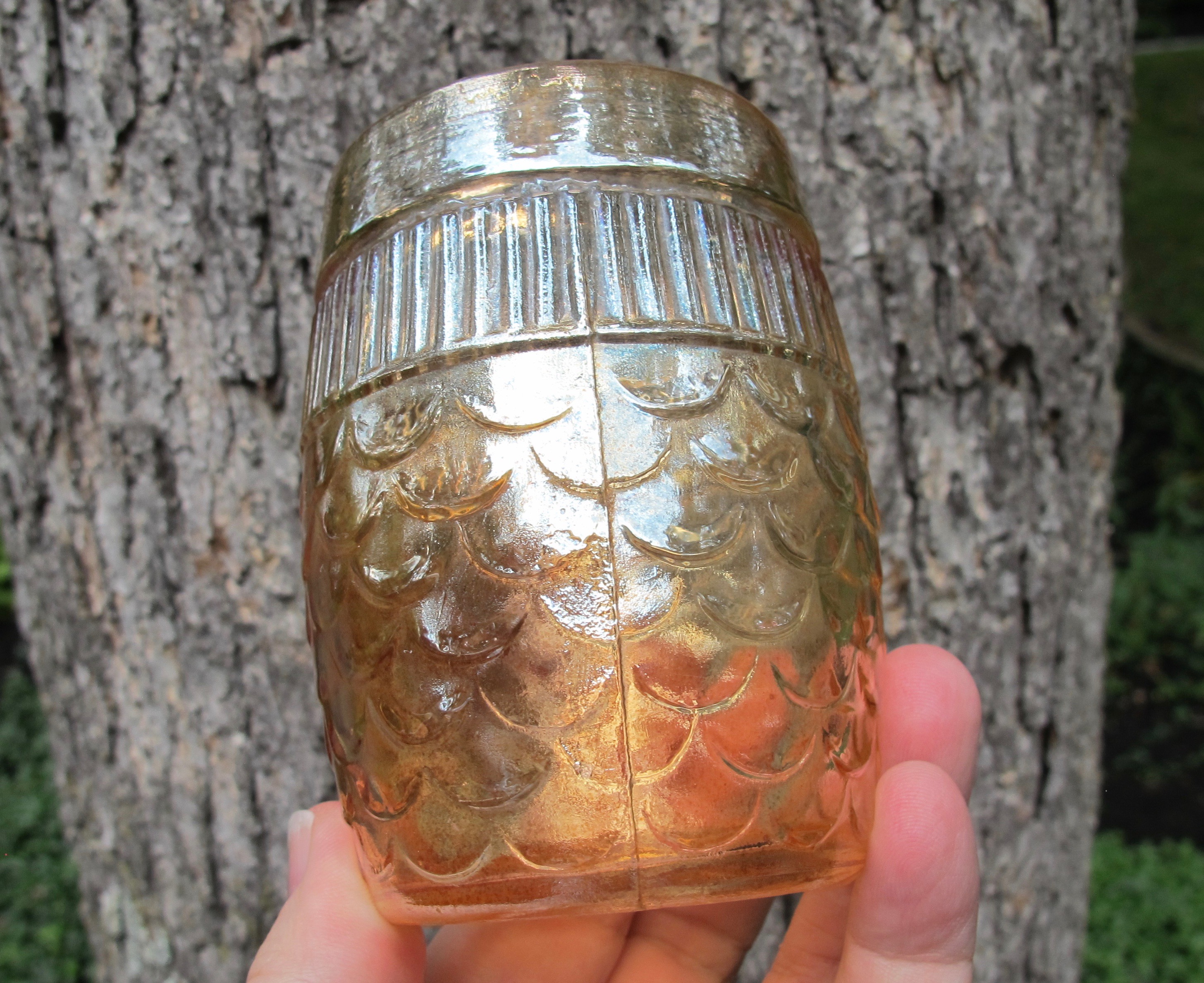 Antique Cristalerias Papini (Argentina) Ribbed Band & Scales Marigold Carnival Glass Tumbler