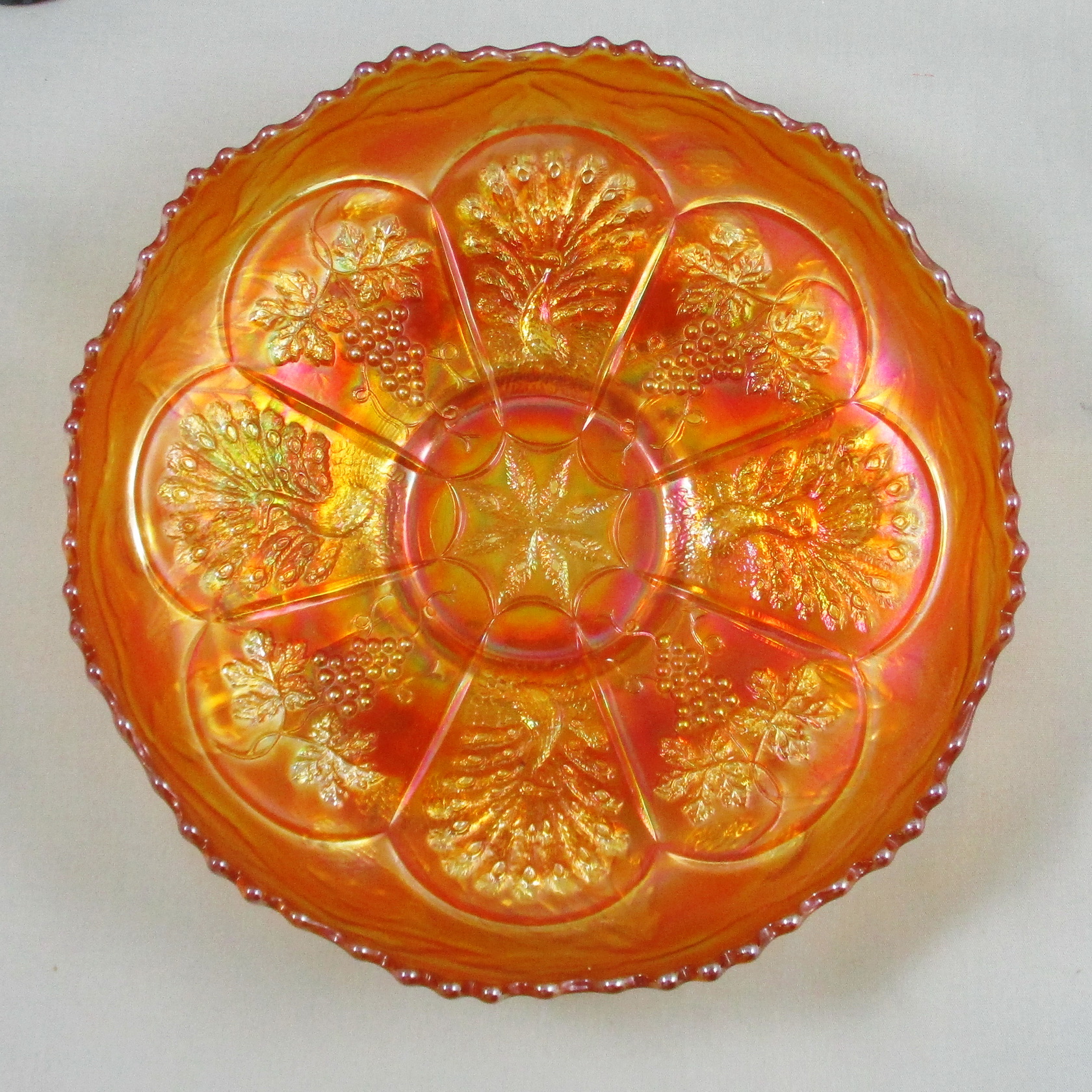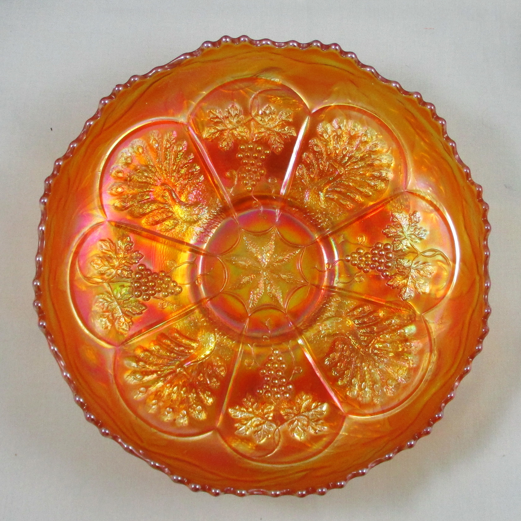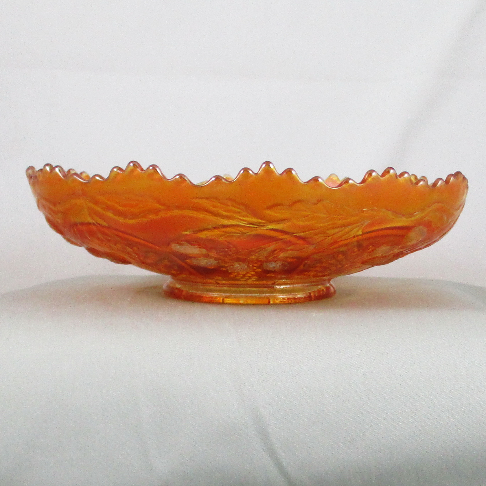 Antique Fenton Marigold Peacock and Grape Carnival Glass Ice Cream Bowl