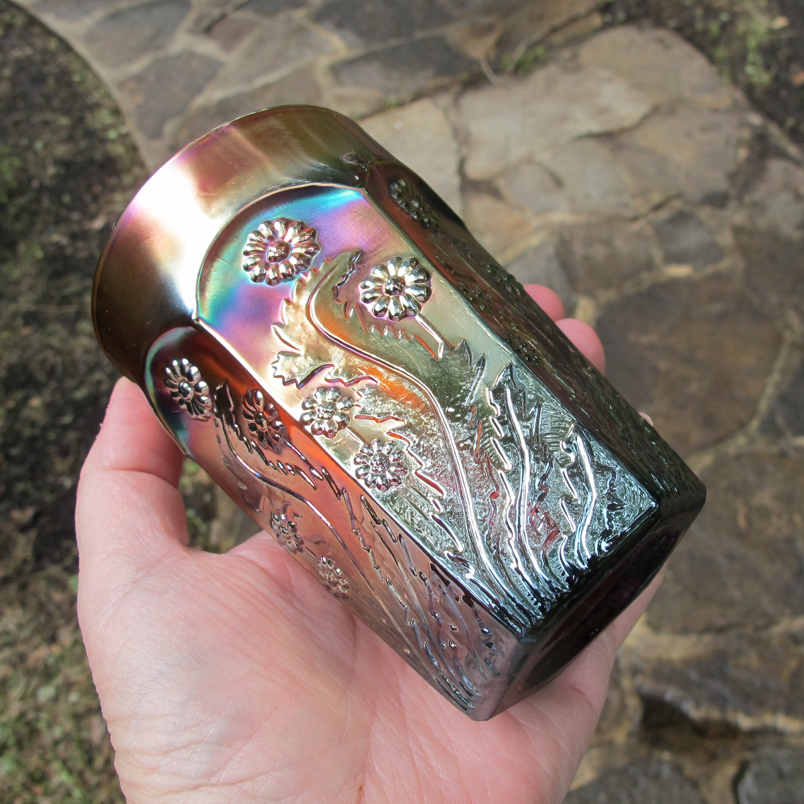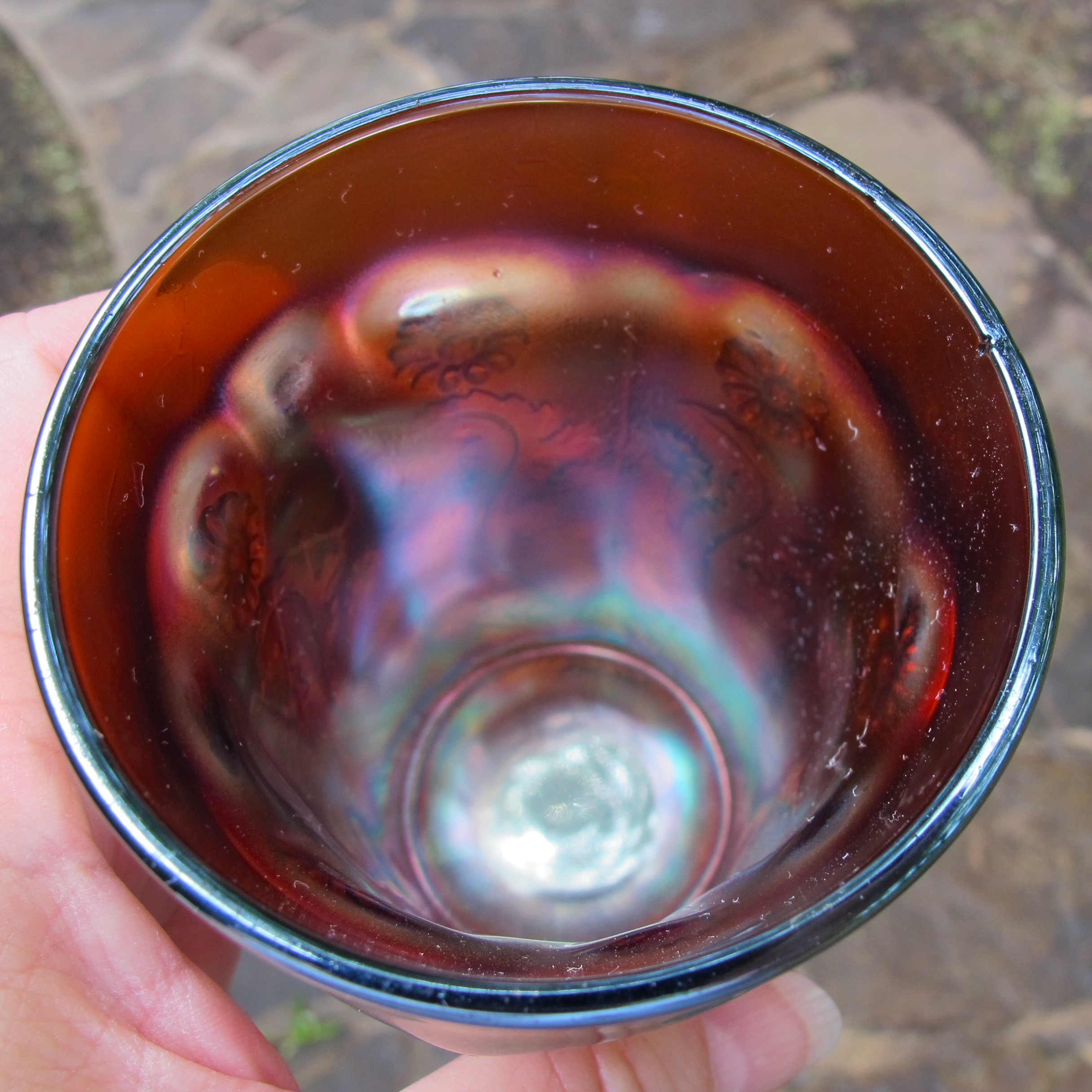 Here is a Paneled Dandelion tumbler in Amethyst … tougher color to find these … yes … BUT this is not your typical one, this tumbler is a VARIANT! How so? It has a wide ribbed interior. (Most of these are smooth inside–no ribs.)
