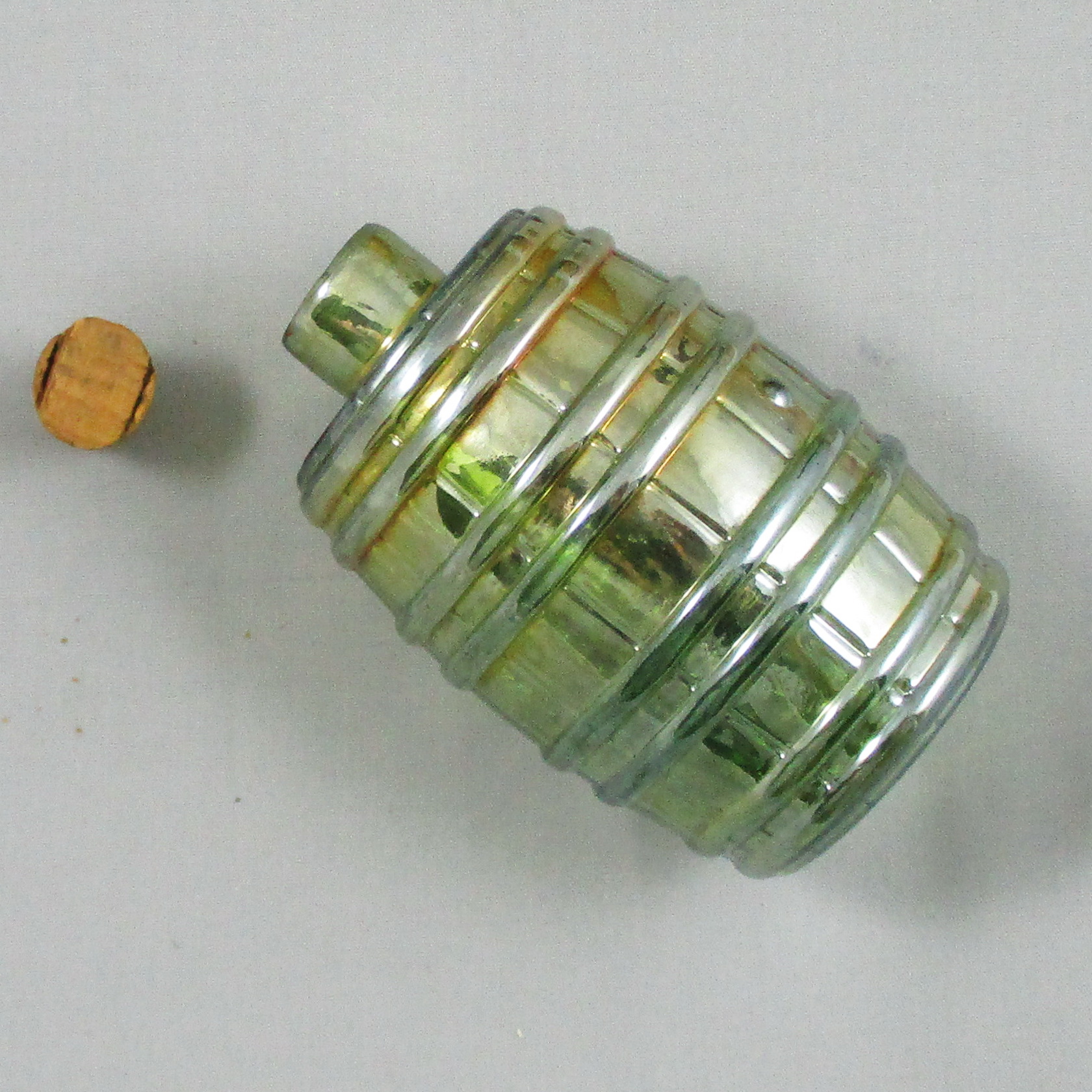 This is an adorable and quite popular novelty made to resemble a Wooden Barrel! This one is Helios Green, thus it is shiny and bold as you can see in the photos. So lovely! Highly collectible!