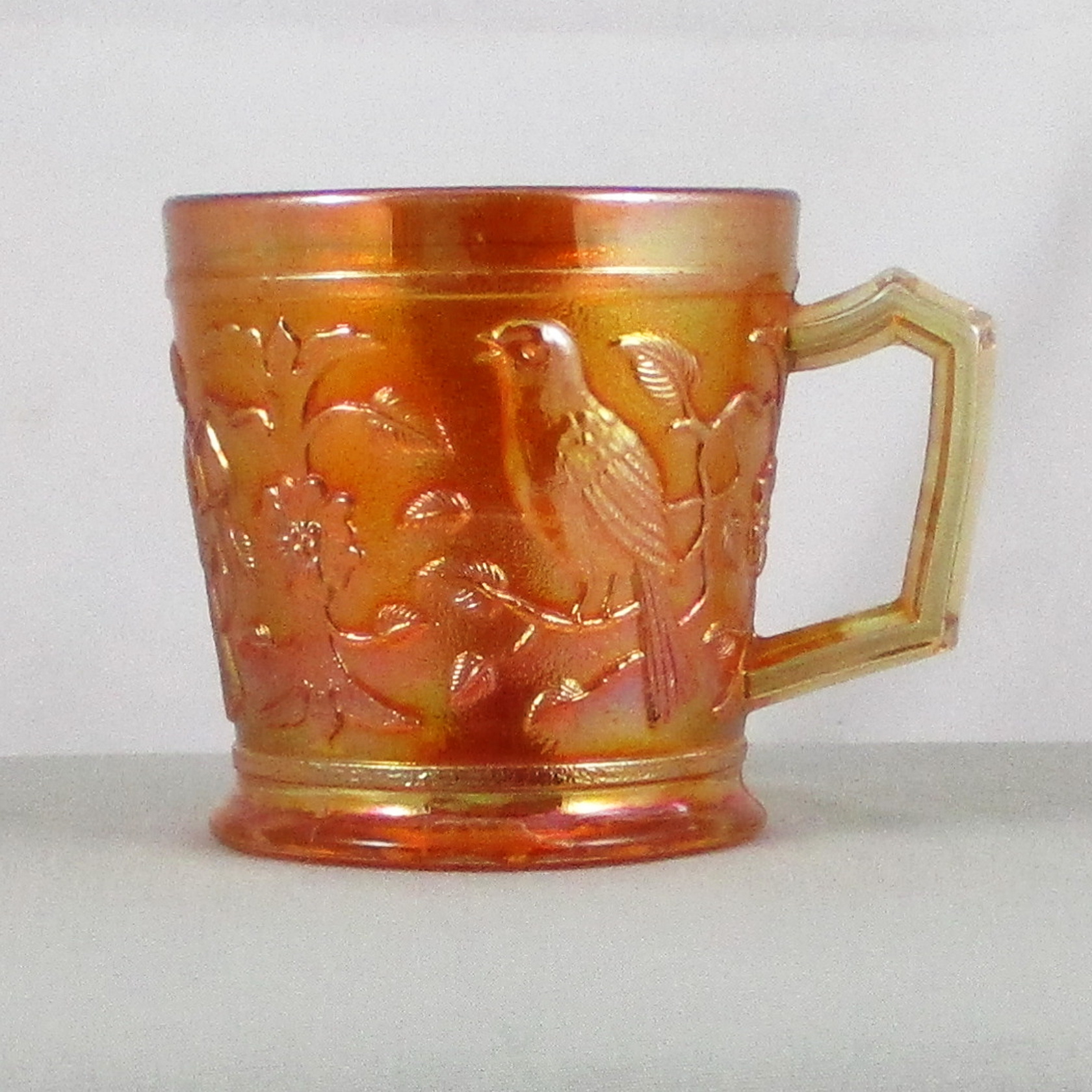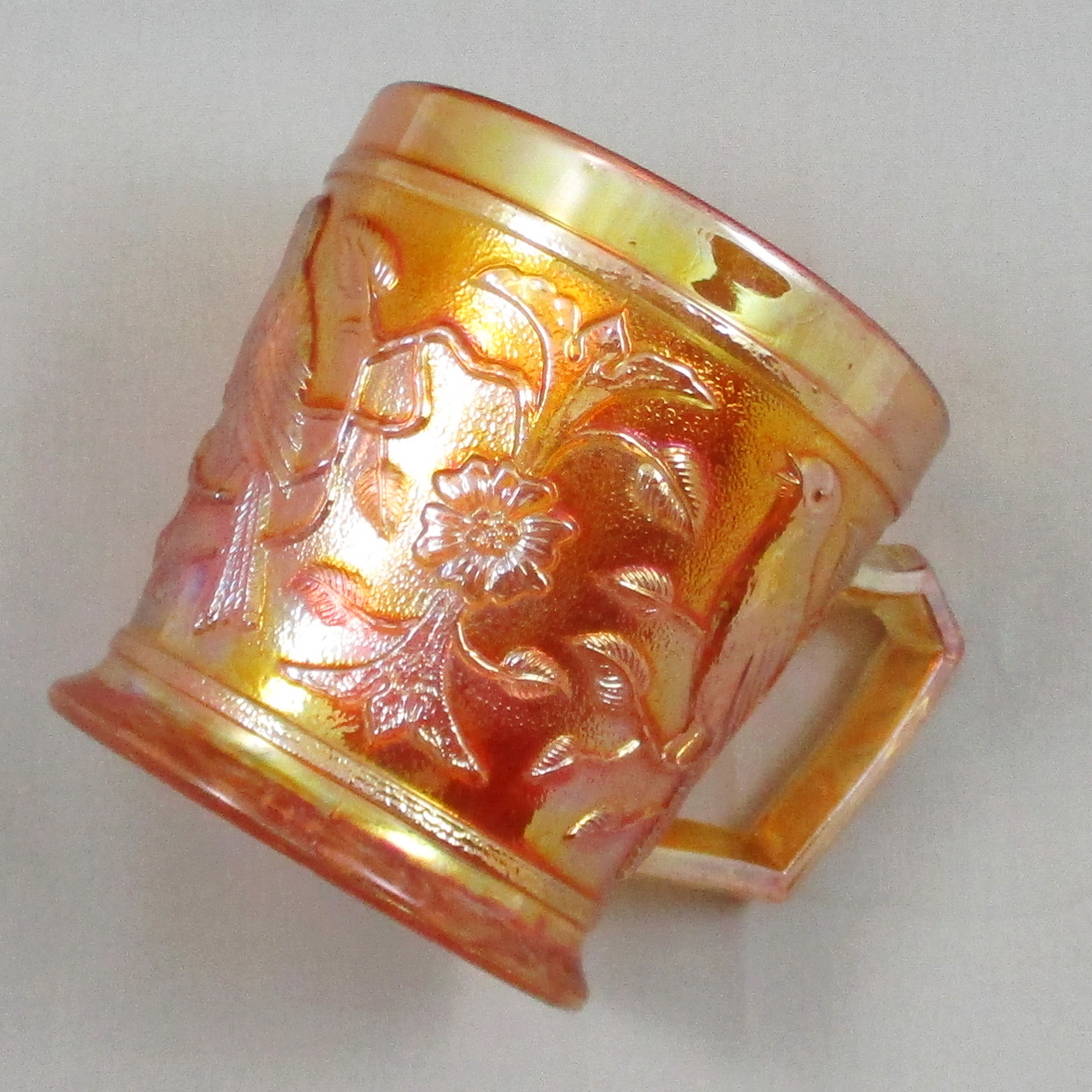 Antique Imperial Marigold Robin Carnival Glass Mug