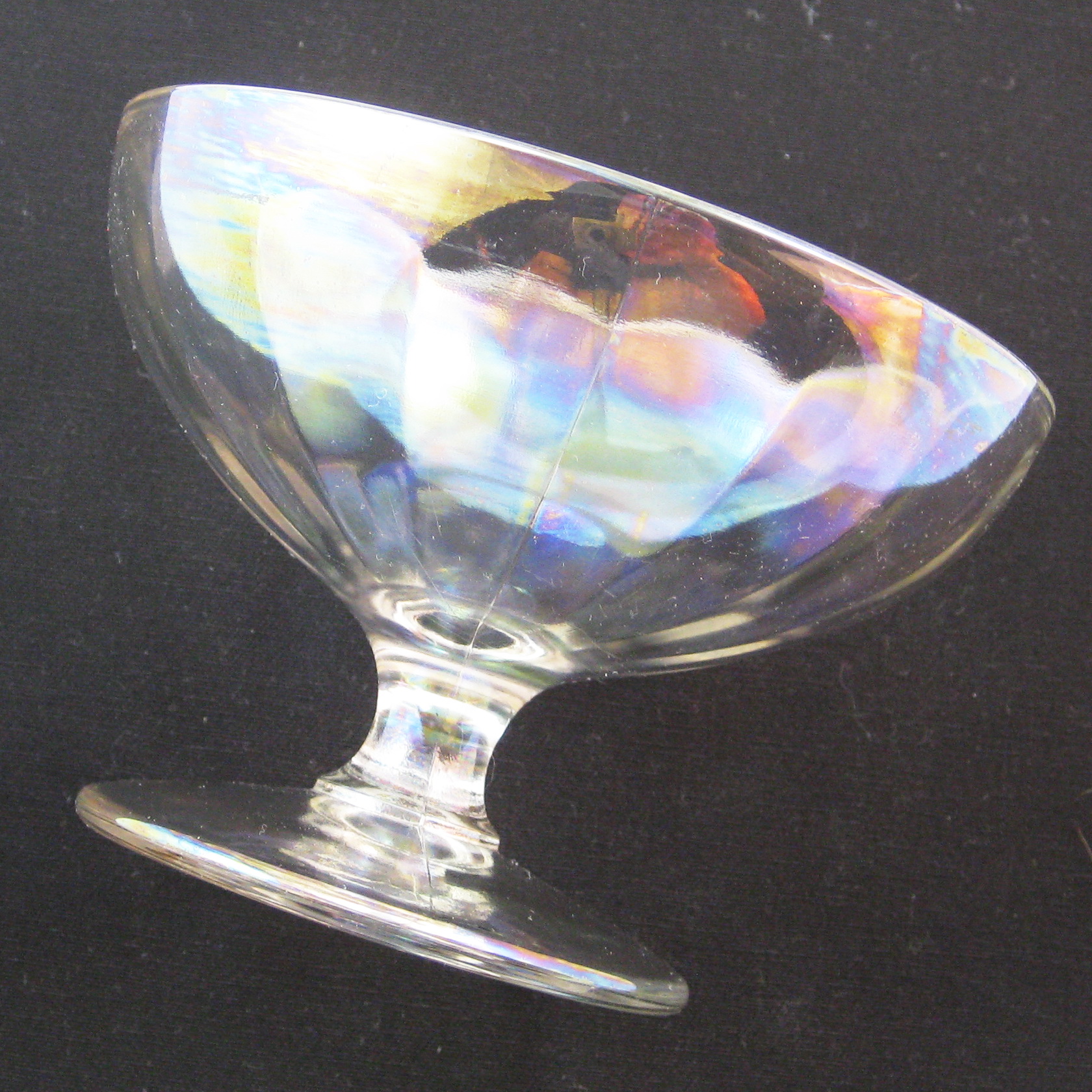 This not a Stretch Glass item… but, I got my manufacturer ID from a Stretch Glass Collector. I looked thru many books. The closest I can find is #138 Puff Box by Lancaster Glass. It looks a bit large for a Puff Box, but, I don’t really know. Bill Crowl, my ID man, said it was a low Candy Jar. Since it is not Stretch, I would classify this as Late Carnival.