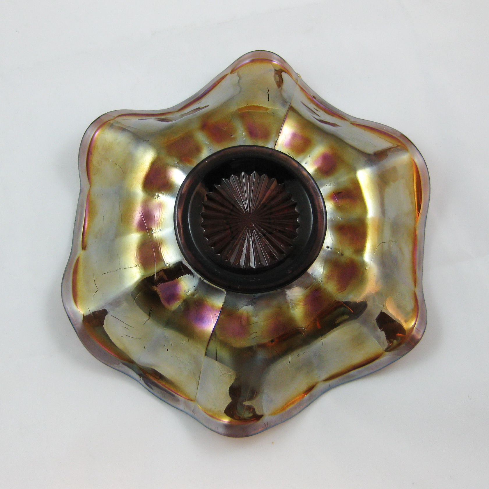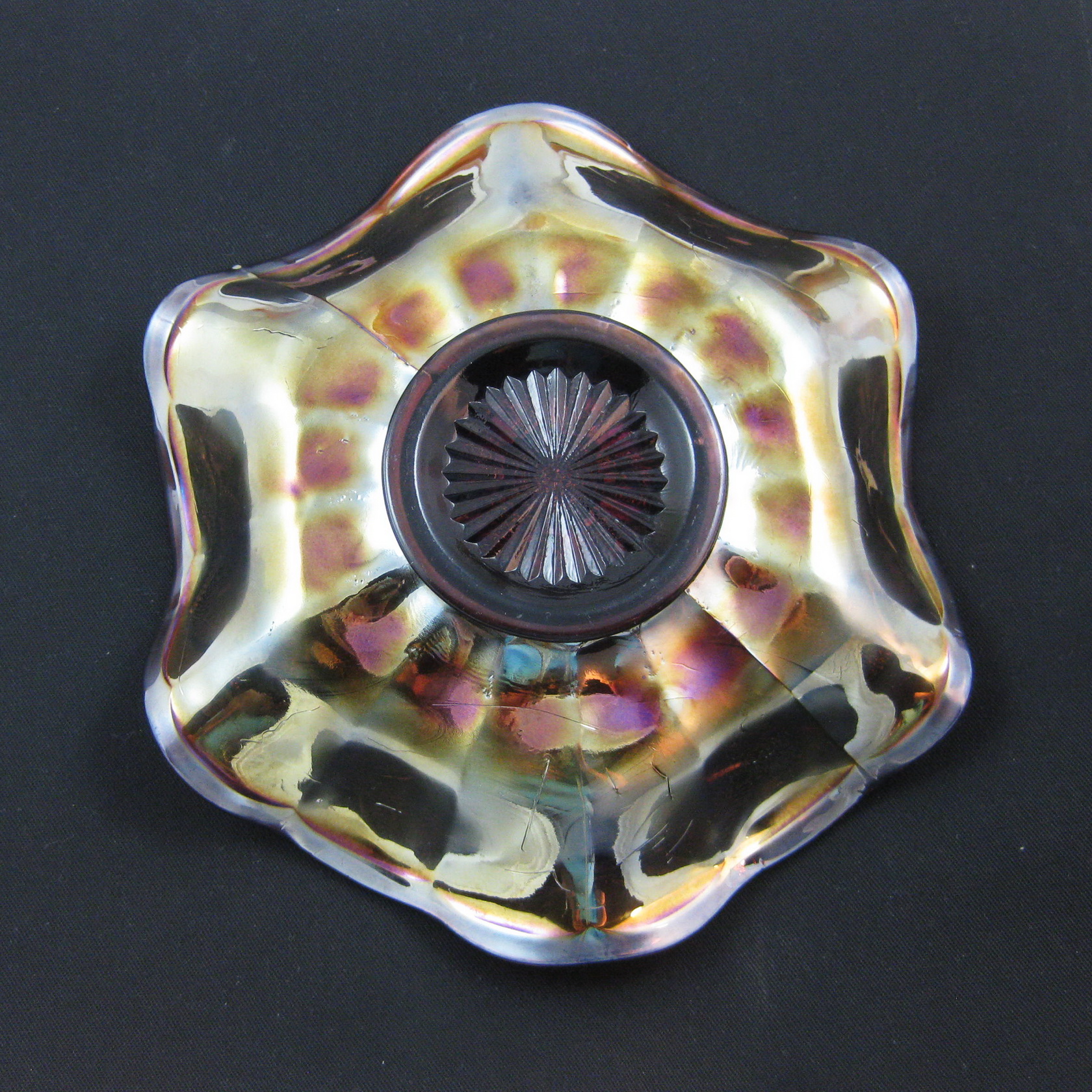 Antique Millersburg Amethyst Little Stars 6-Ruffle Carnival Glass Bowl