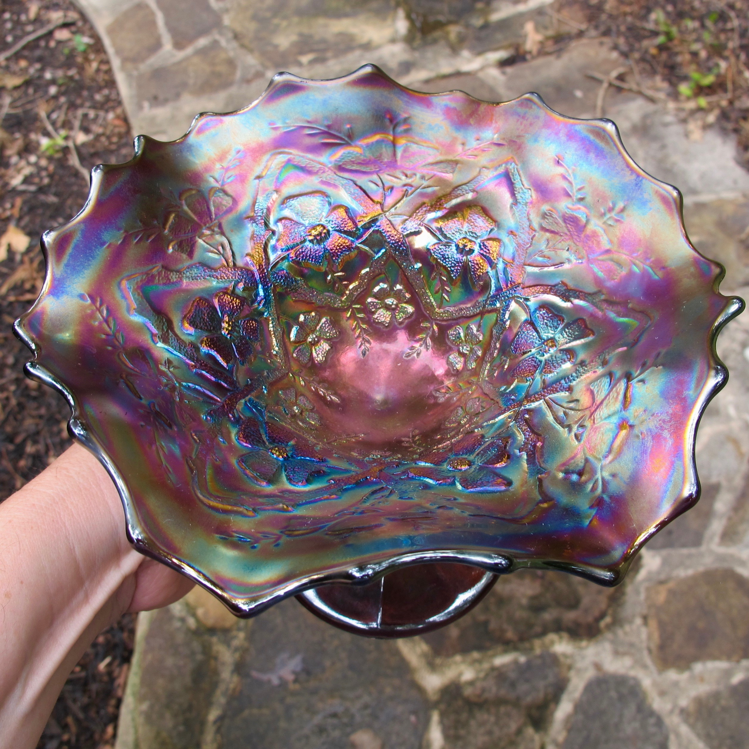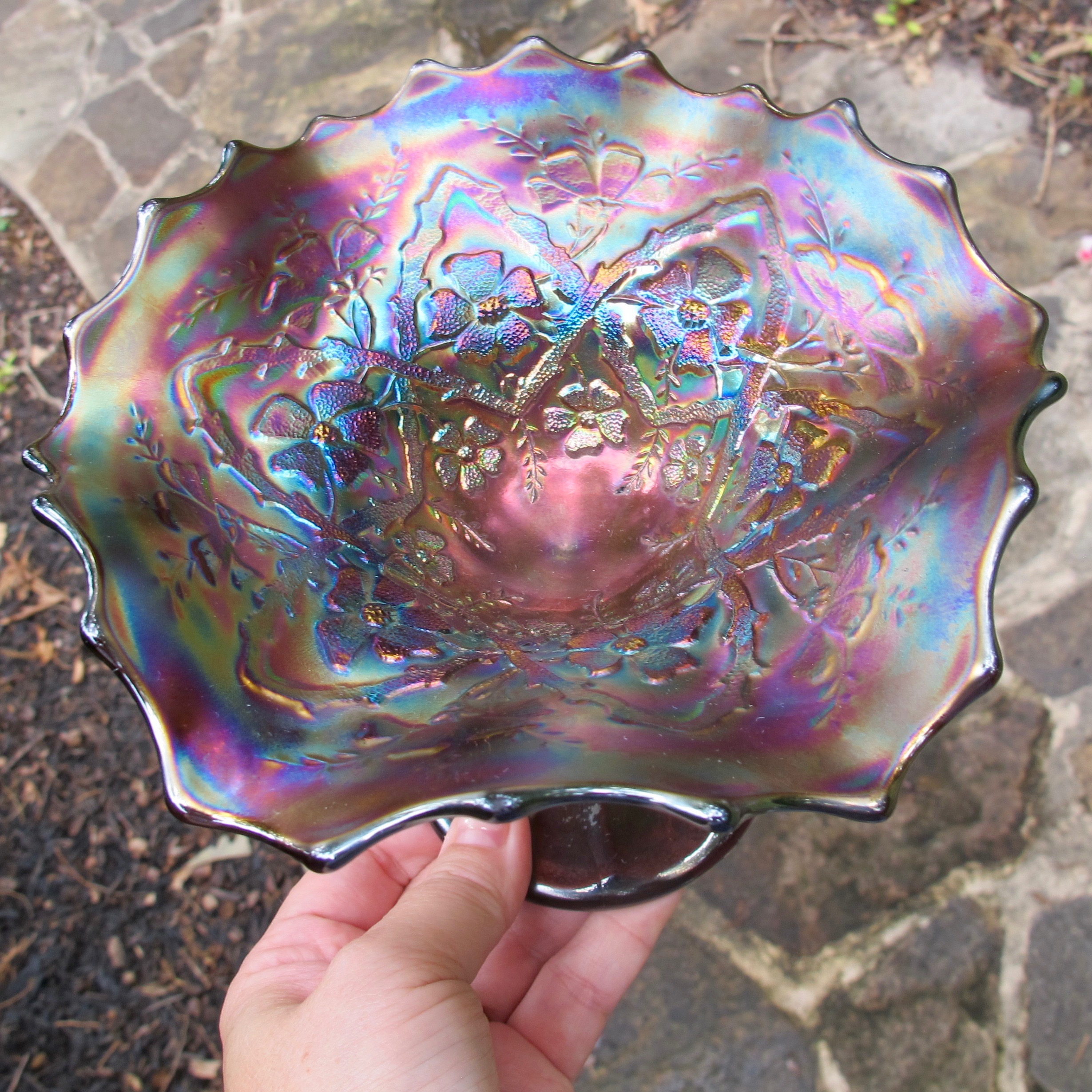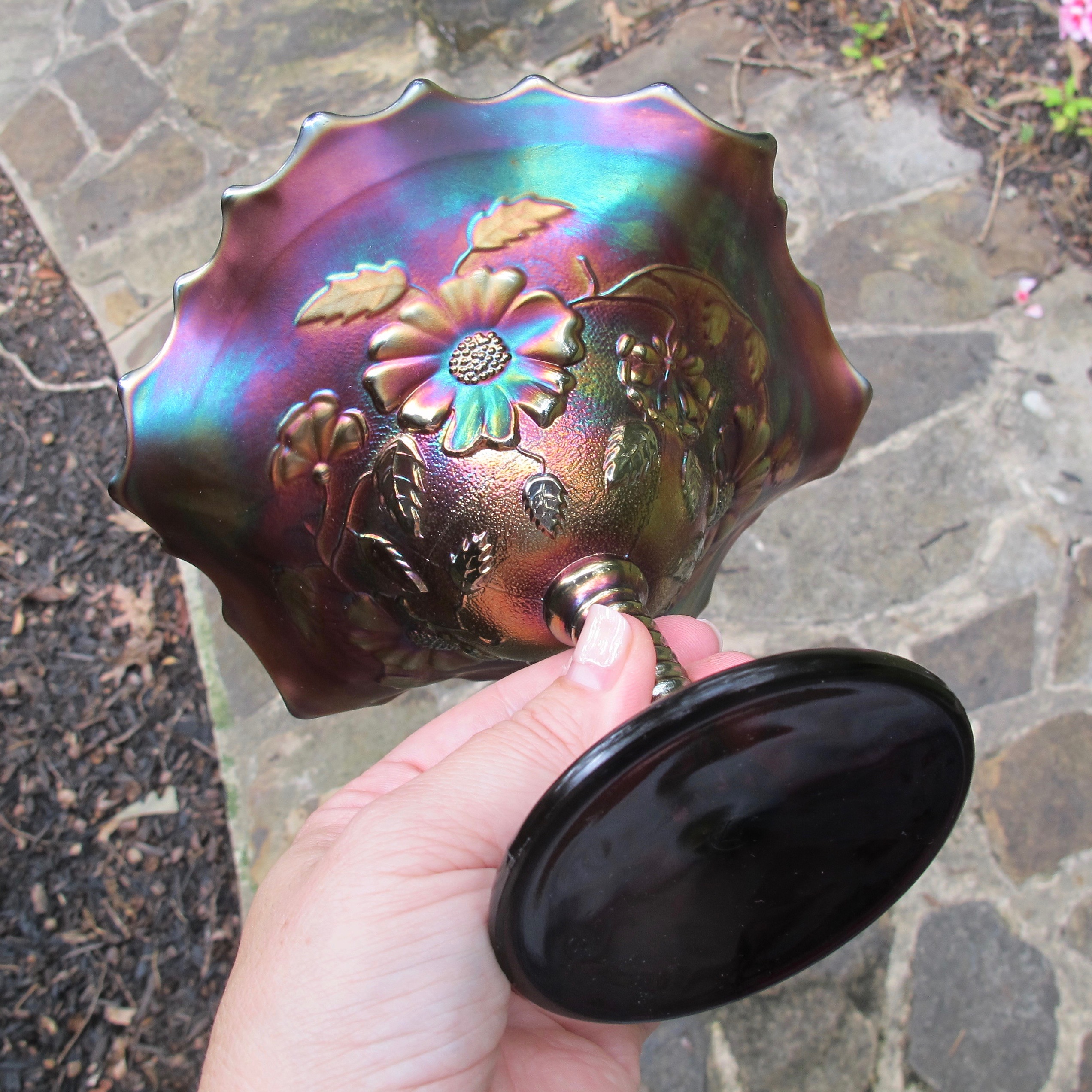 Antique Northwood Blossomtime Amethyst Carnival Glass Compote