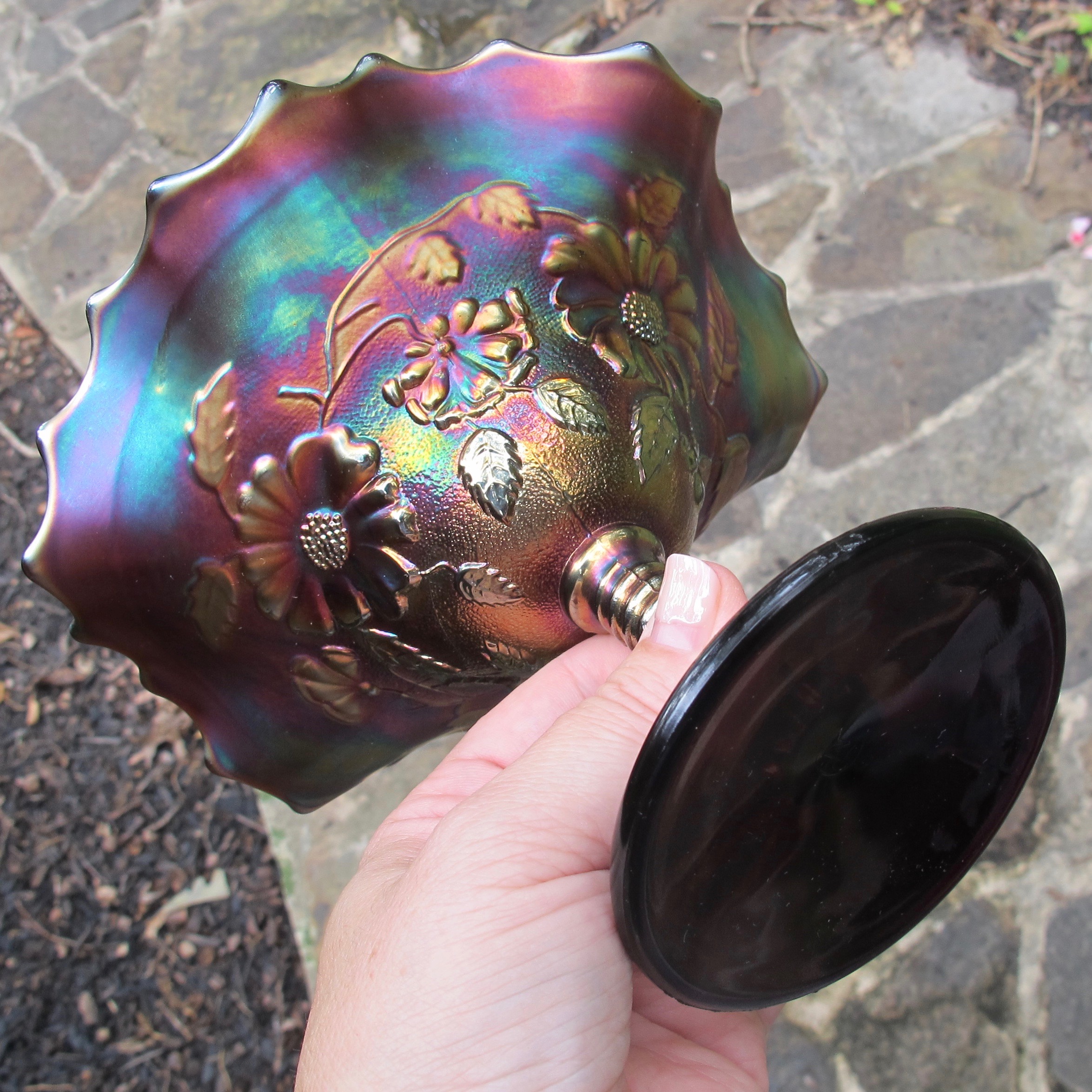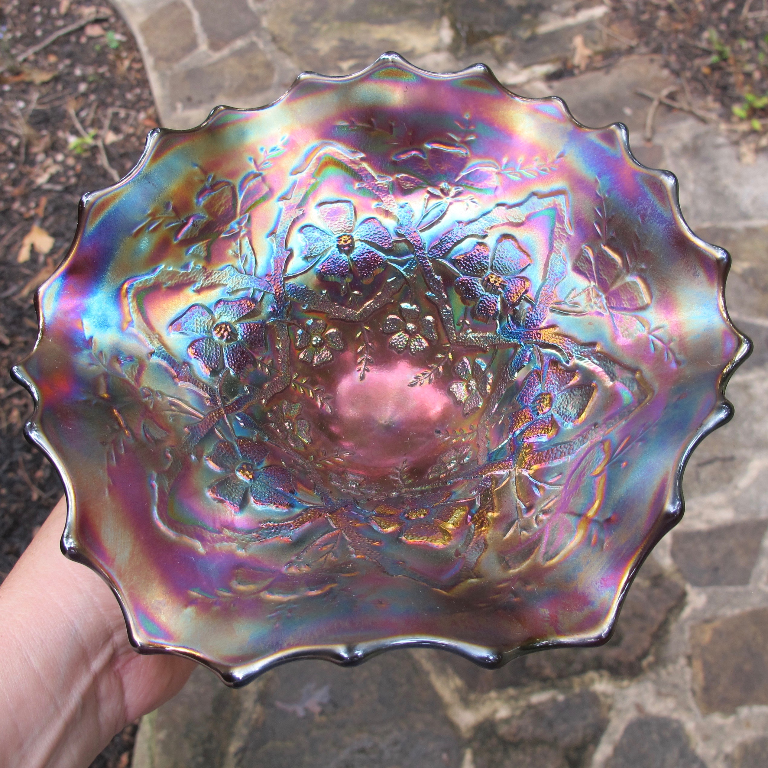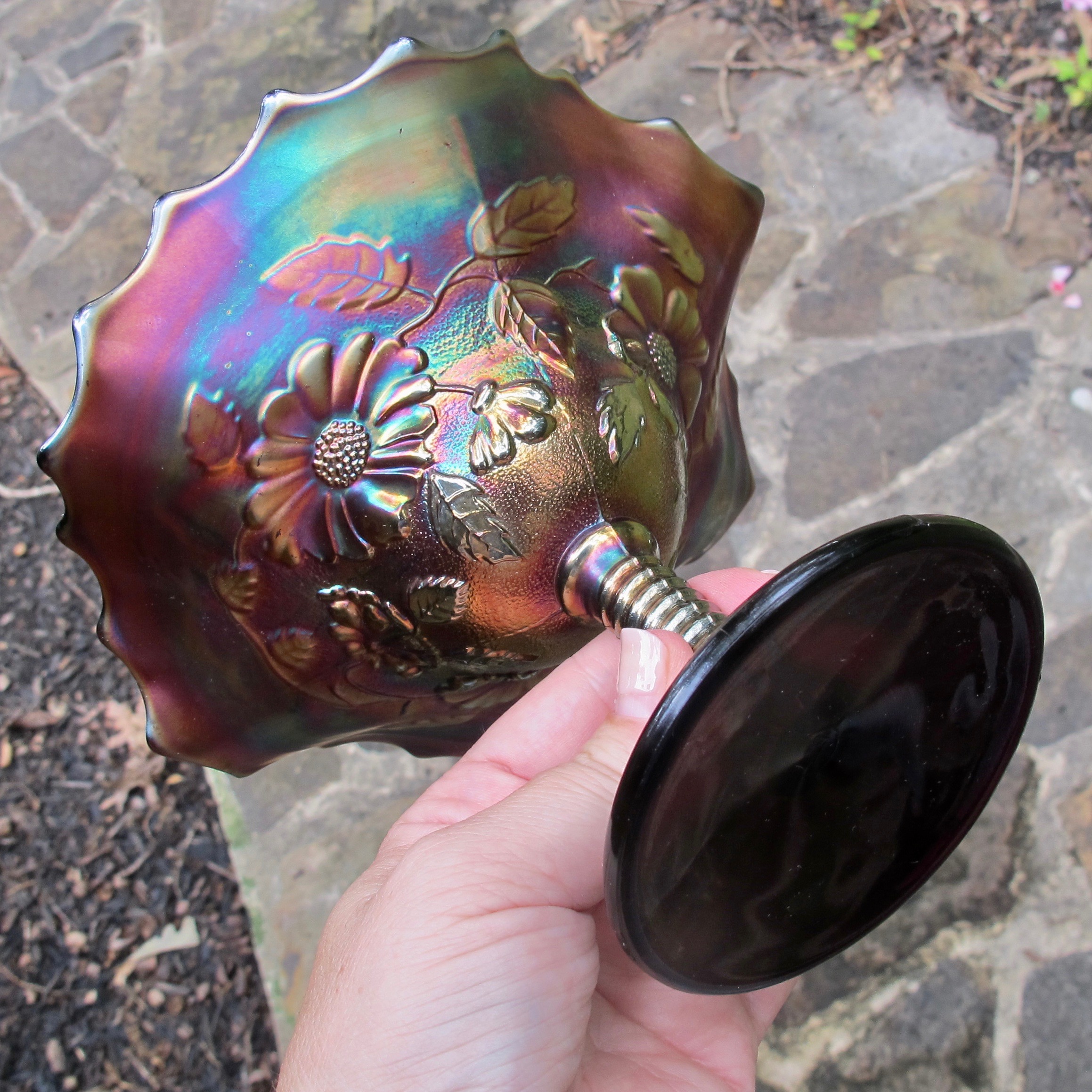 Antique Northwood Blossomtime Amethyst Carnival Glass Compote