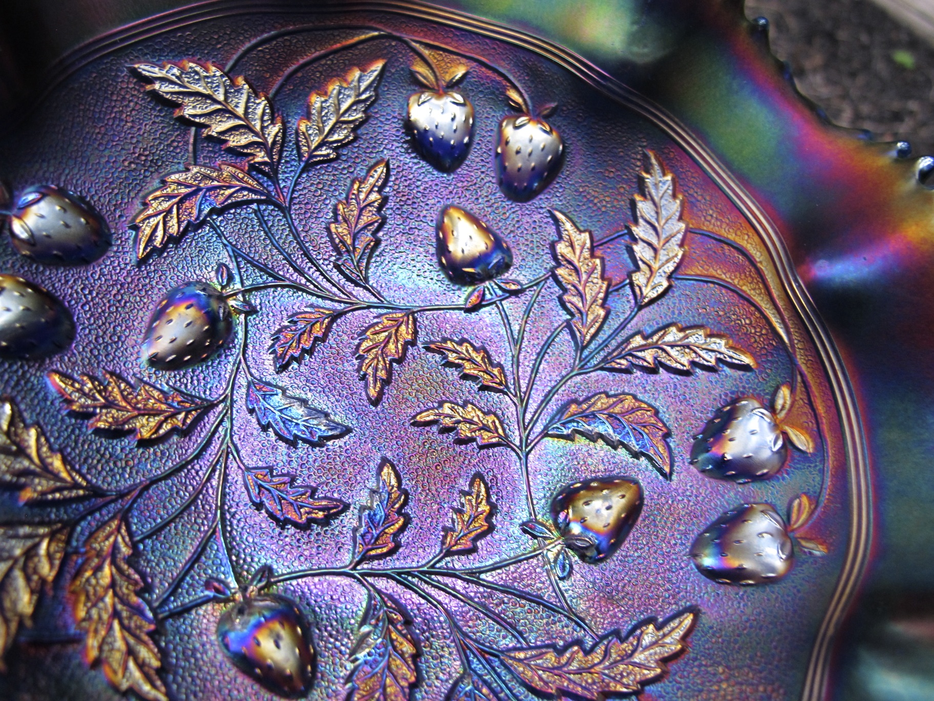 This is a Northwood BLUE stippled Strawberry bowl! It’s got amazing coloring that is brilliant even atop of the stippling!
