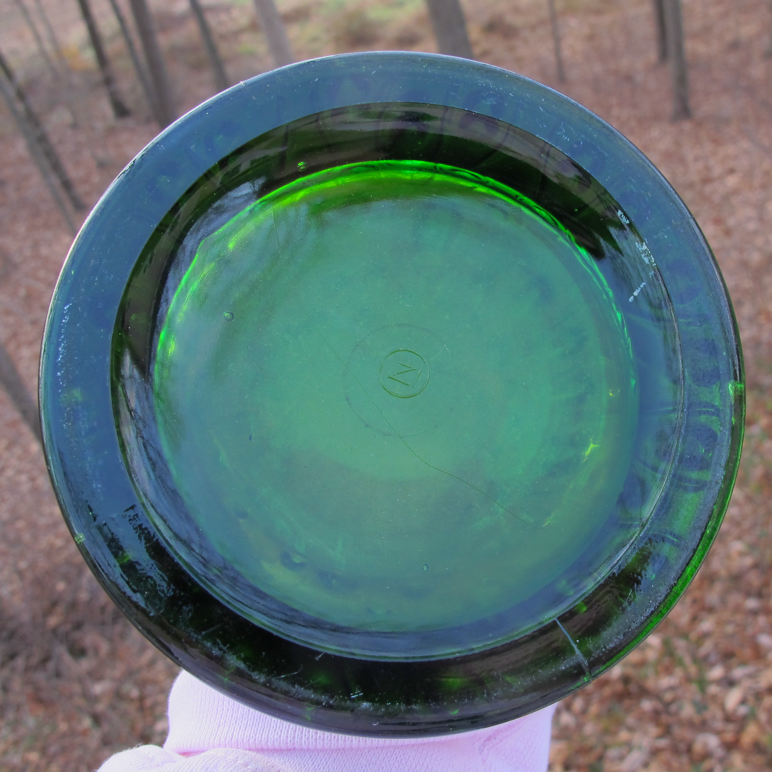 This is top notch and right off of my shelf! It is a Northwood mid-sized Tree Trunk vase! Top of the line in GREEN! Love the emerald green highlighting in the mouth!