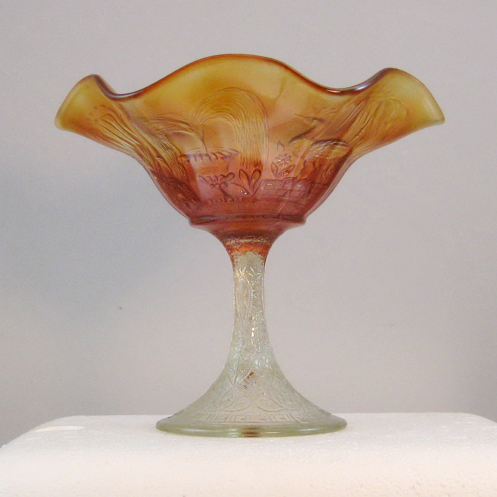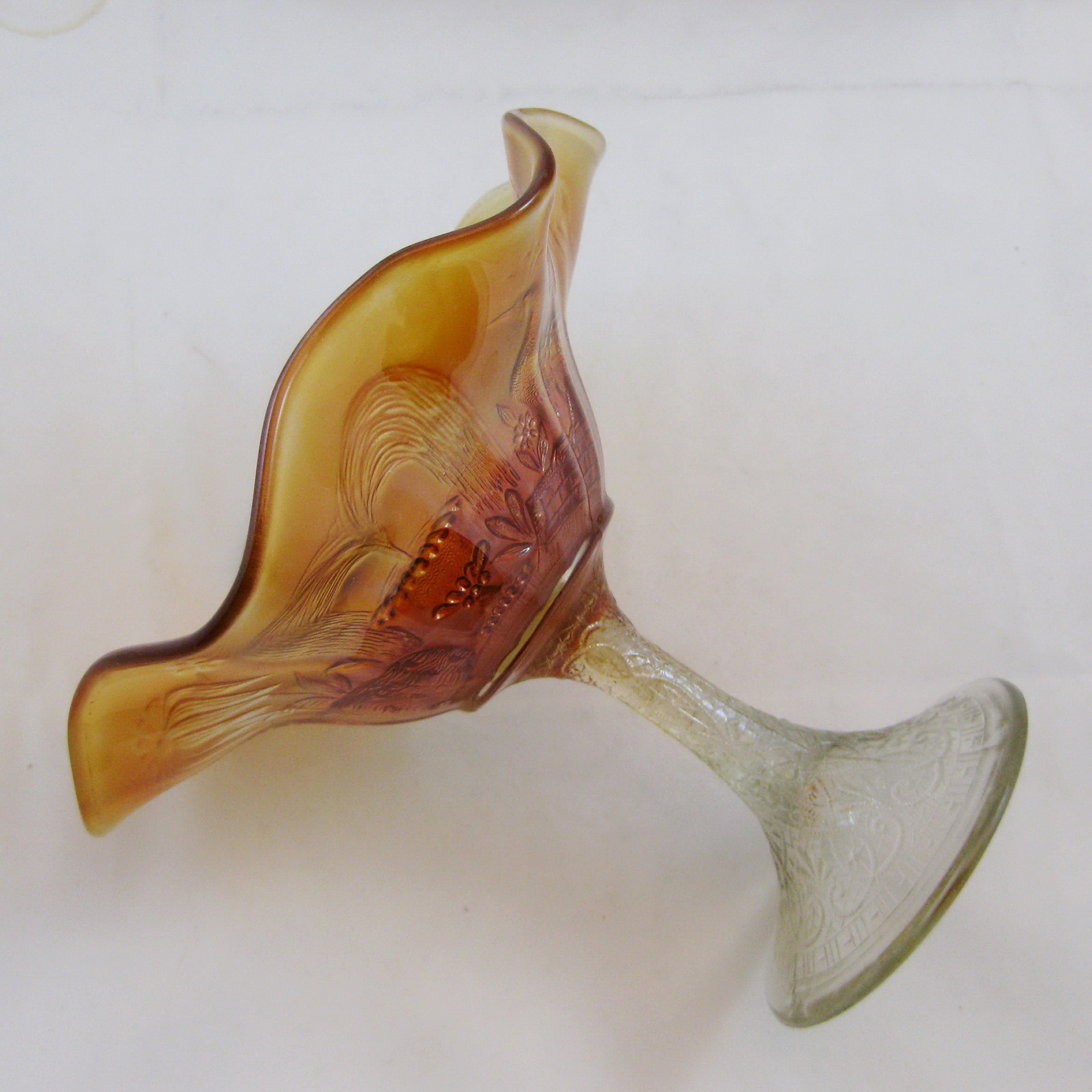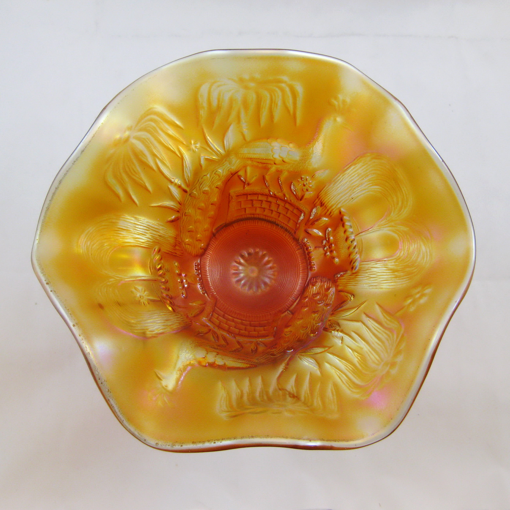 Antique Northwood Marigold Peacock at the Fountain Carnival Glass Compote