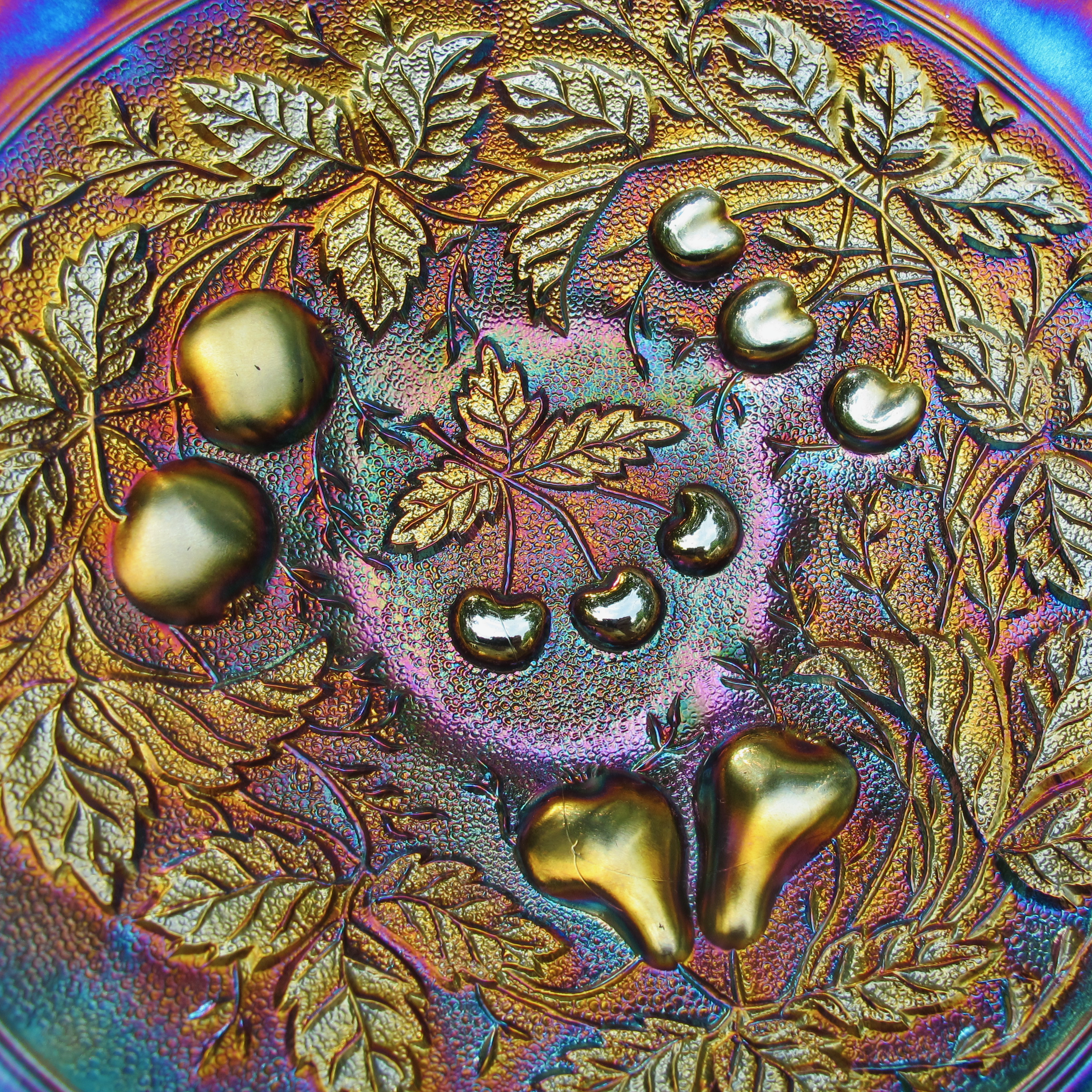 Here is a beautiful Three Fruits stippled plate! There are so many colors in amongst that stippling that I cannot even begin to set them out for you!