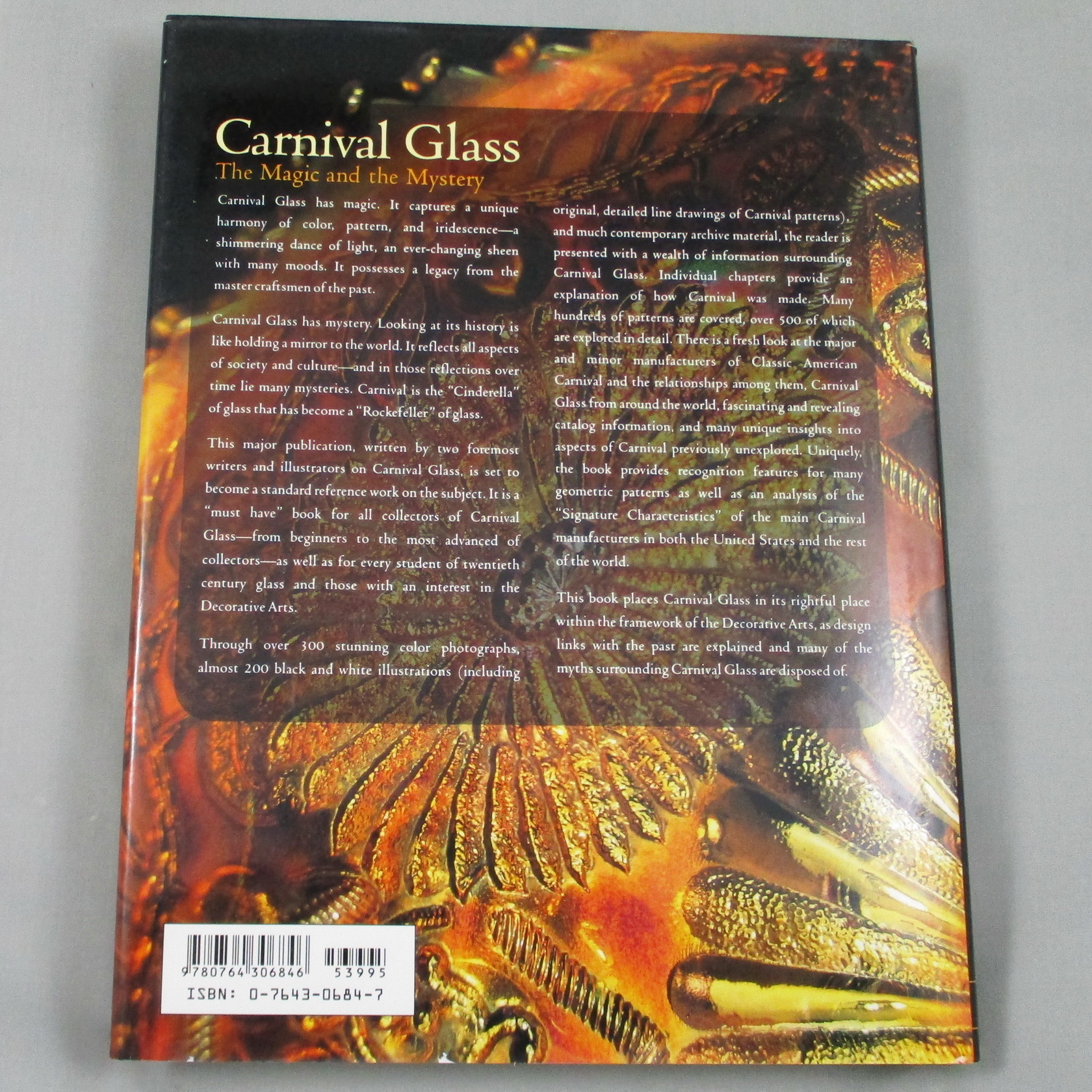 Book:  Carnival Glass The Magic and the Mystery by Glen & Stephen Thistlewood , Hardback with Dust Jacket, 8 3/4“ x 11 1/4“, 3#2.4oz, c: 1998, Publisher: Shiffer, 224 pgs.