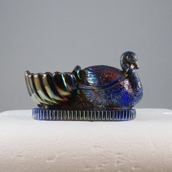 Fenton acquired the Swan #4 mould in 1926. These swans begin showing up in Fenton cataloges in 30’s. I do not know how to tell the difference in a Fenton Swan and a Dugan Swan other than the Iridescence or The Diamond D mark.