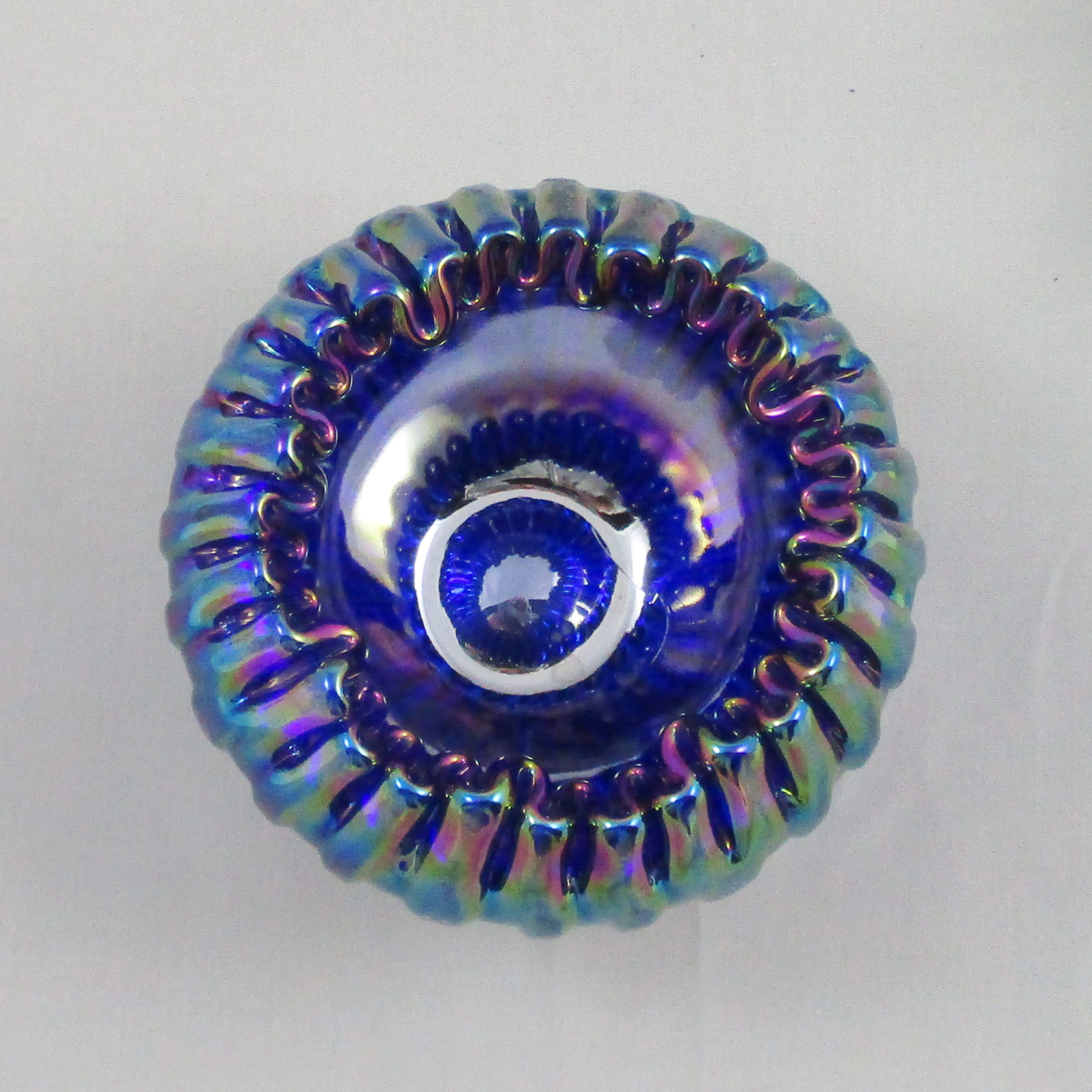 This is a really nice, Cobalt Marigold, Blue Carnival Glass FABREGE #9653 NK Rosebowl.  This has a Tight Crimped Edge.
