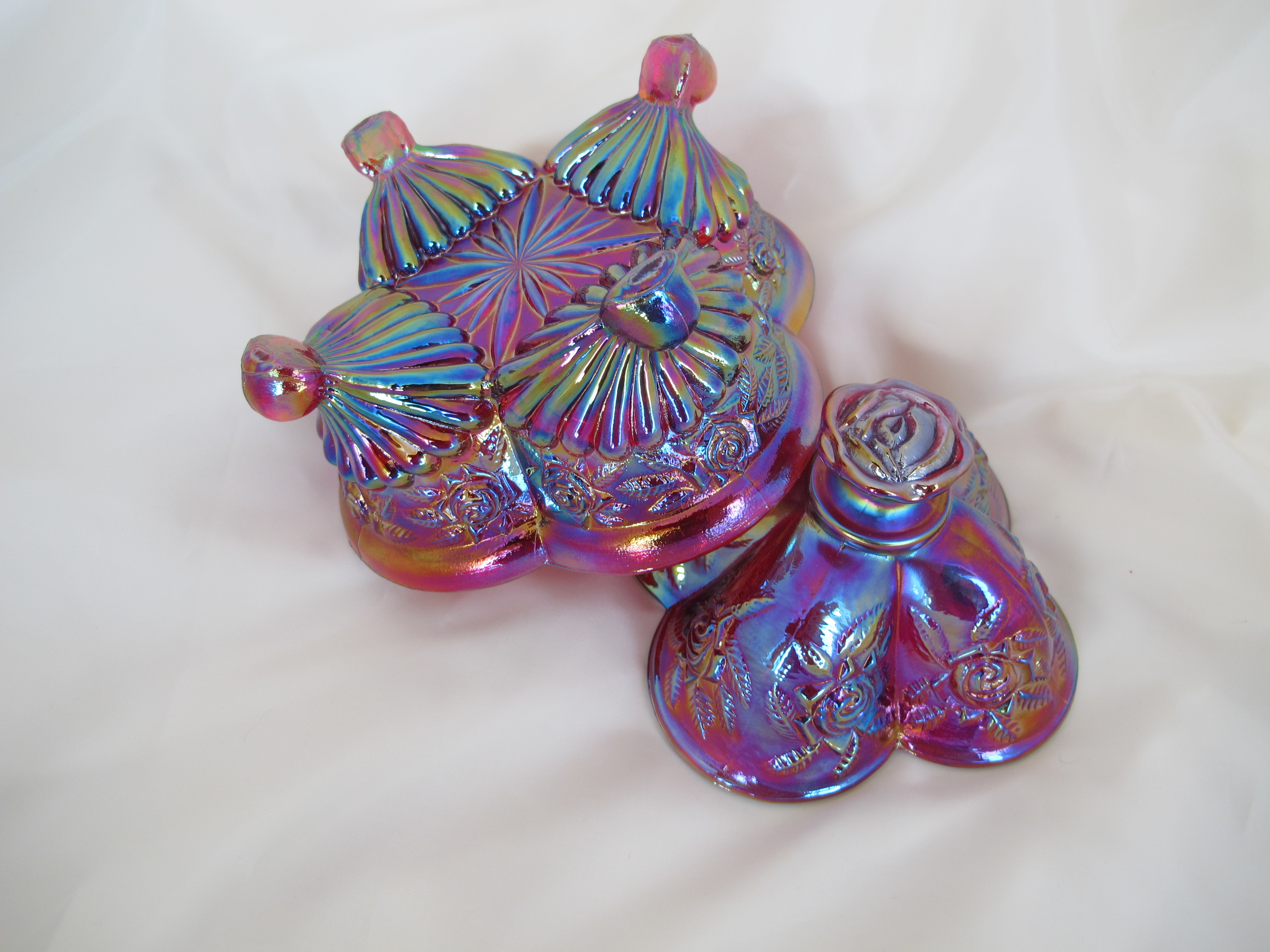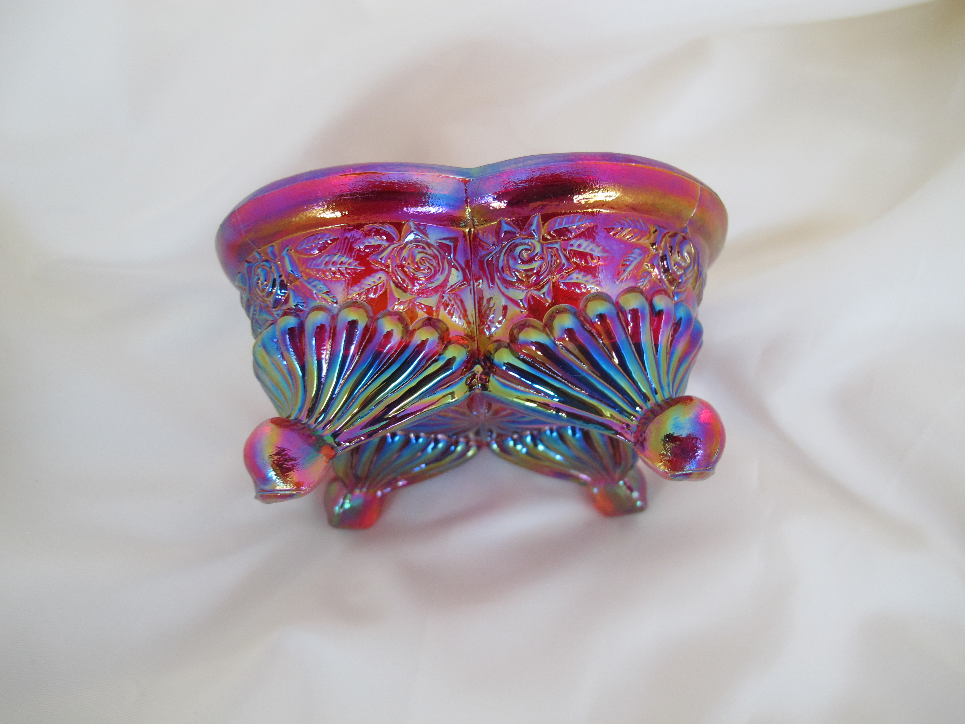 Fenton Red Roses Carnival Art Glass Trinket Jewelry Box Dish