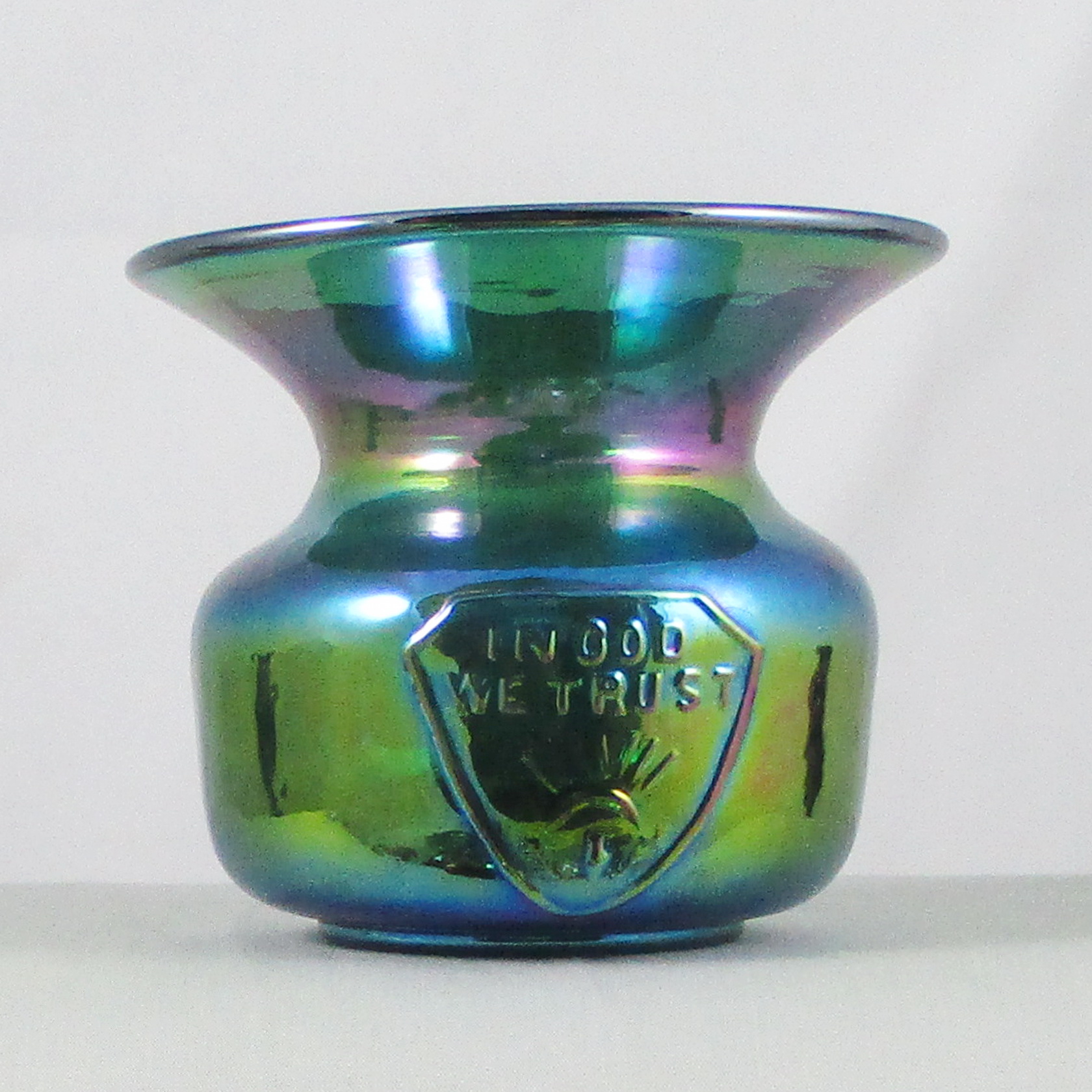Gibson Teal Green In God We Trust Carnival Glass Spittoon Limited Edition for ACGA
