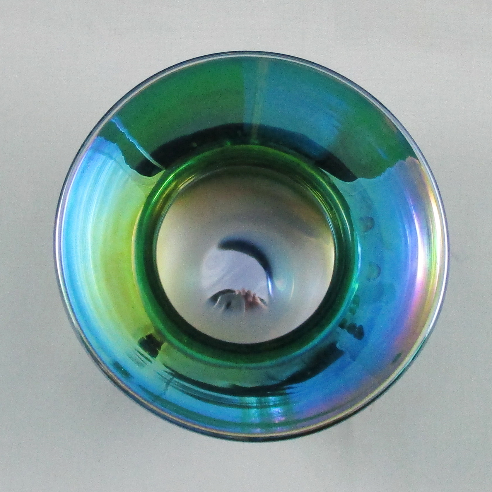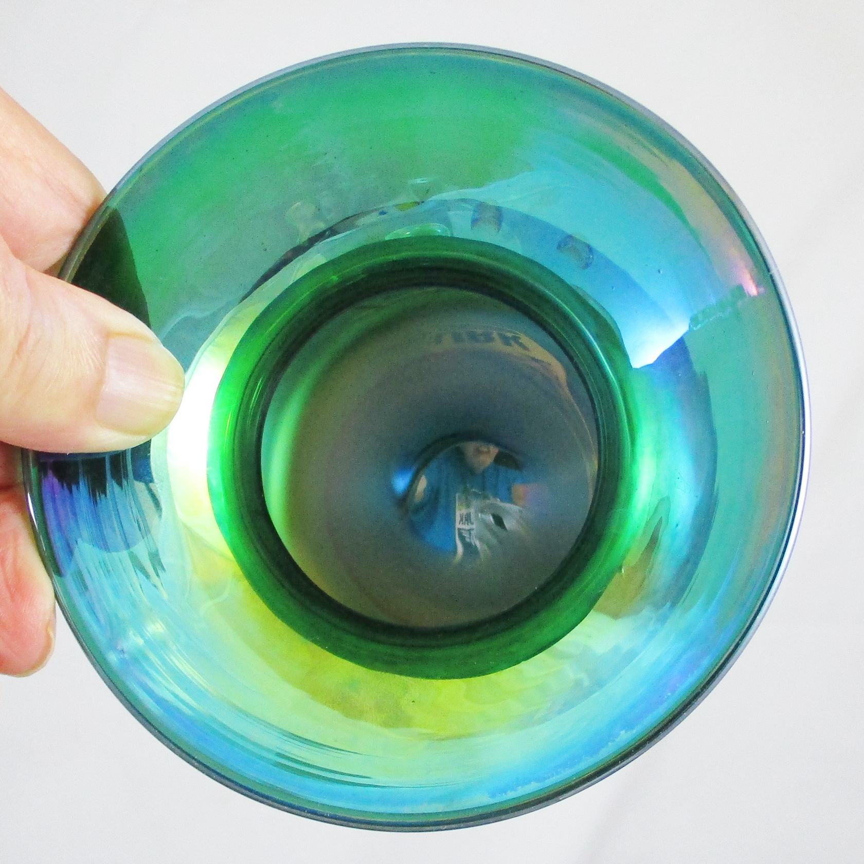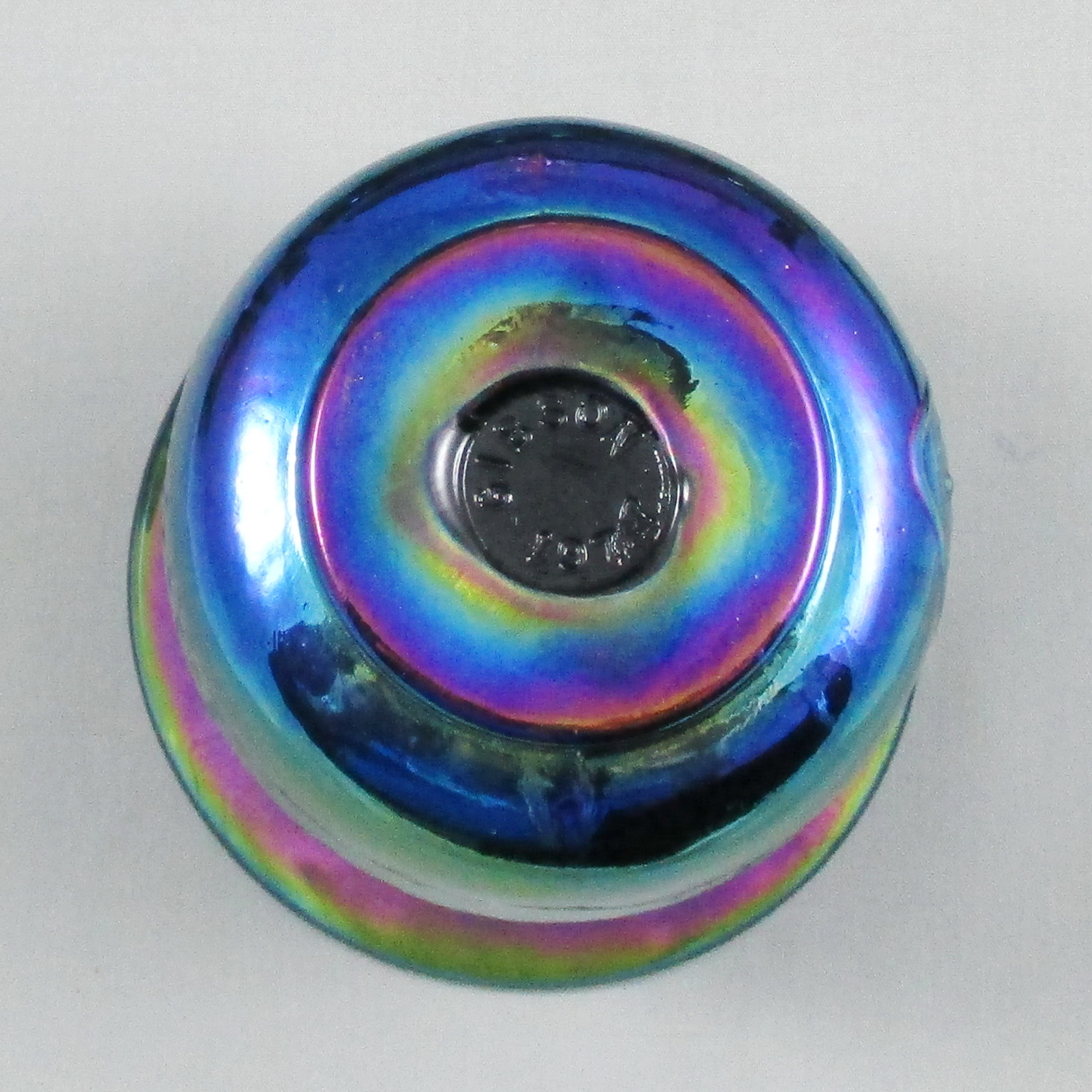 Really nice Teal Green Glass with various iridescent colors on it.  Info is impressed into the base.