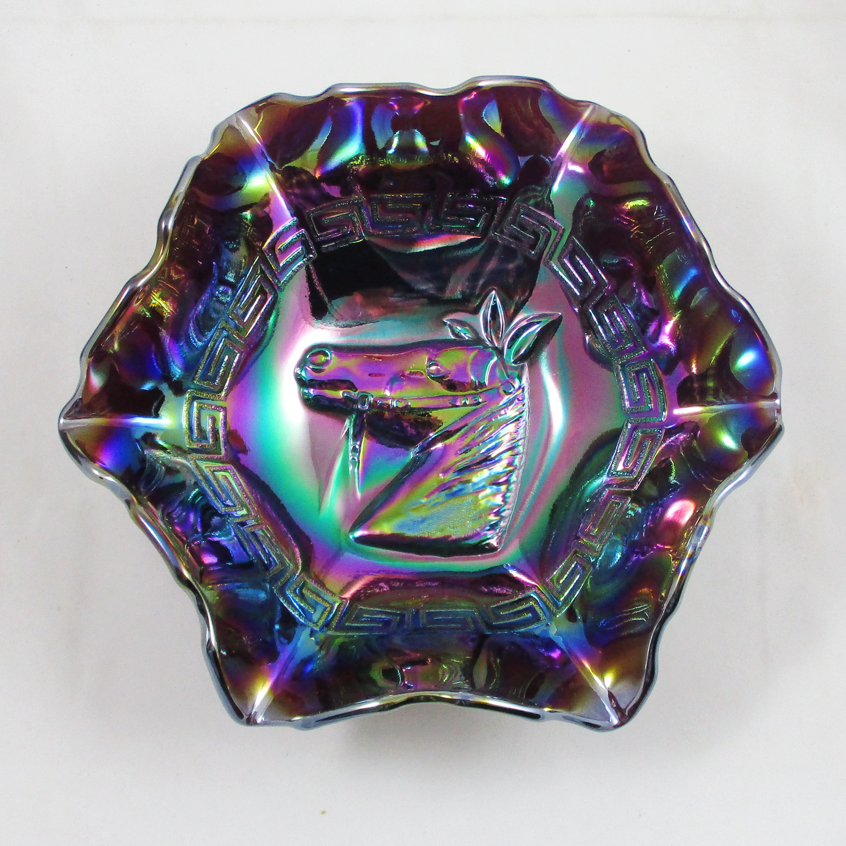 LG Wright Purple Pony Carnival Glass 6-ruffle Bowl
