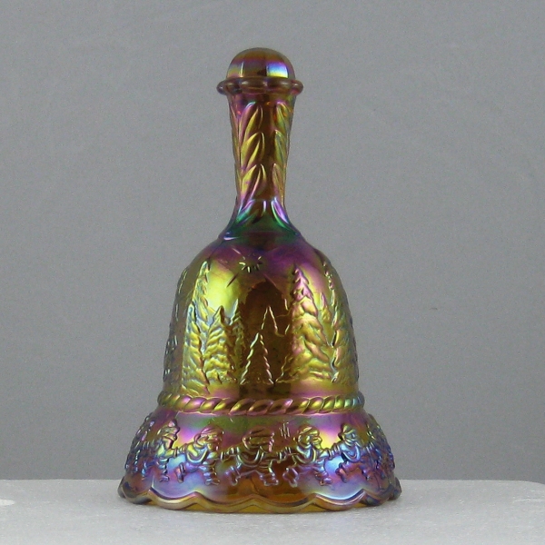 Rare Santa Claus Hand Bell made at the Imperial factory after the bankruptcy by New Imperial Glass Co. This was a special order for Mary Walrath and was limited to 200 pieces in Amber Carnival Glass. This was the last glass to be turned out of the Imperial Factory.
