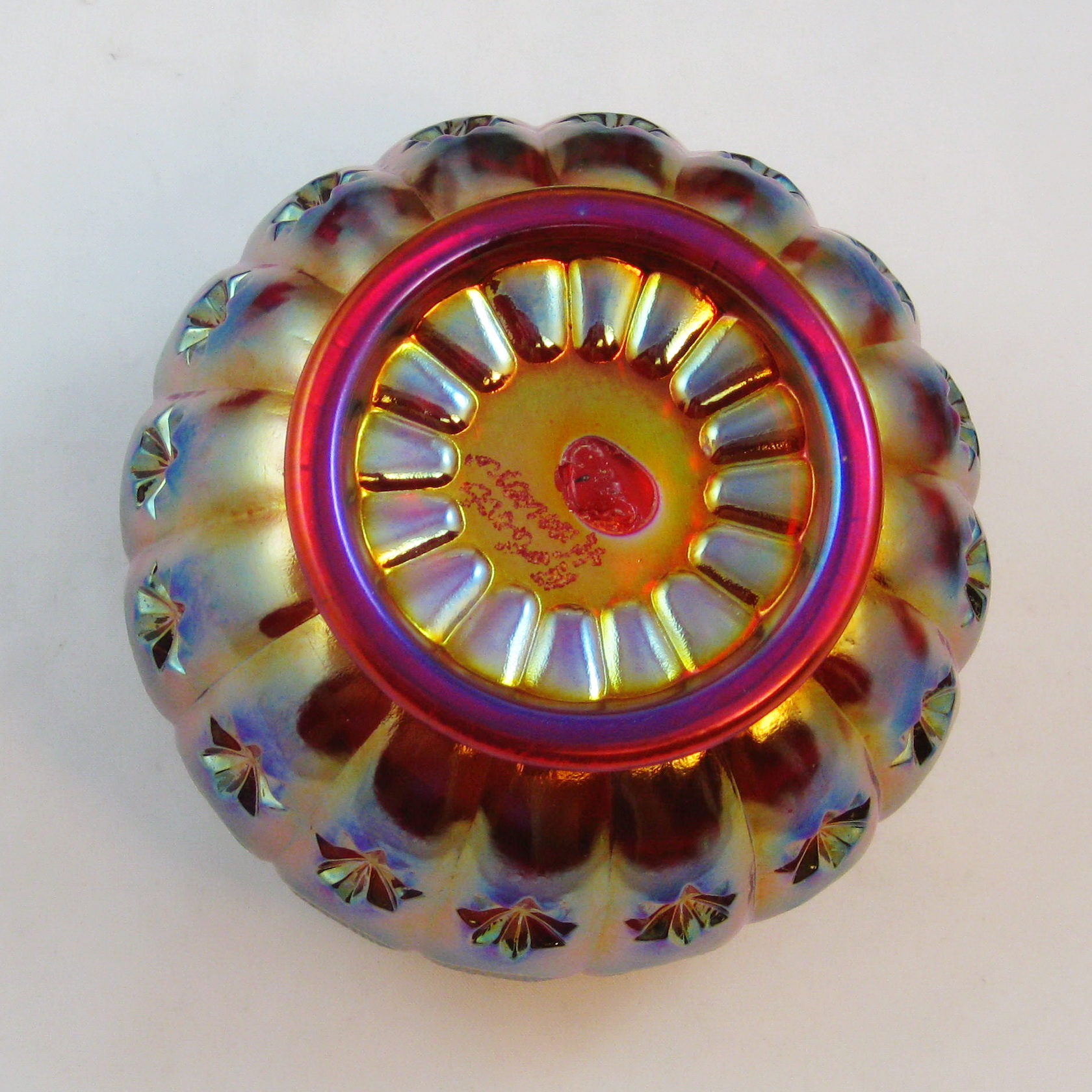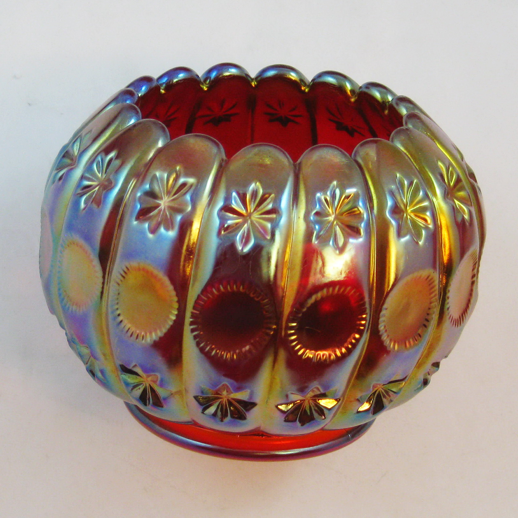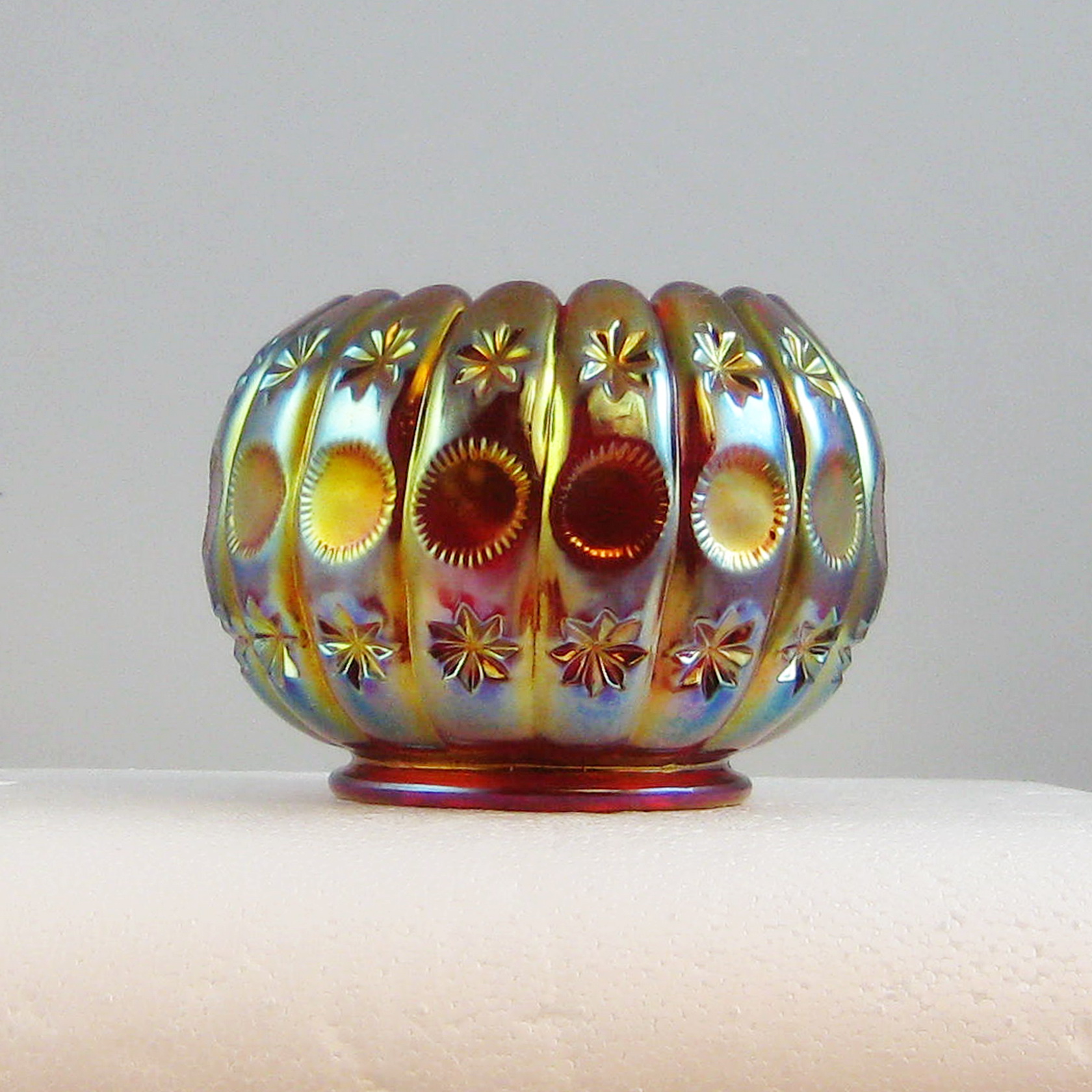 Robert Hansen Red Moon & Star Carnival Glass Rose Bowl