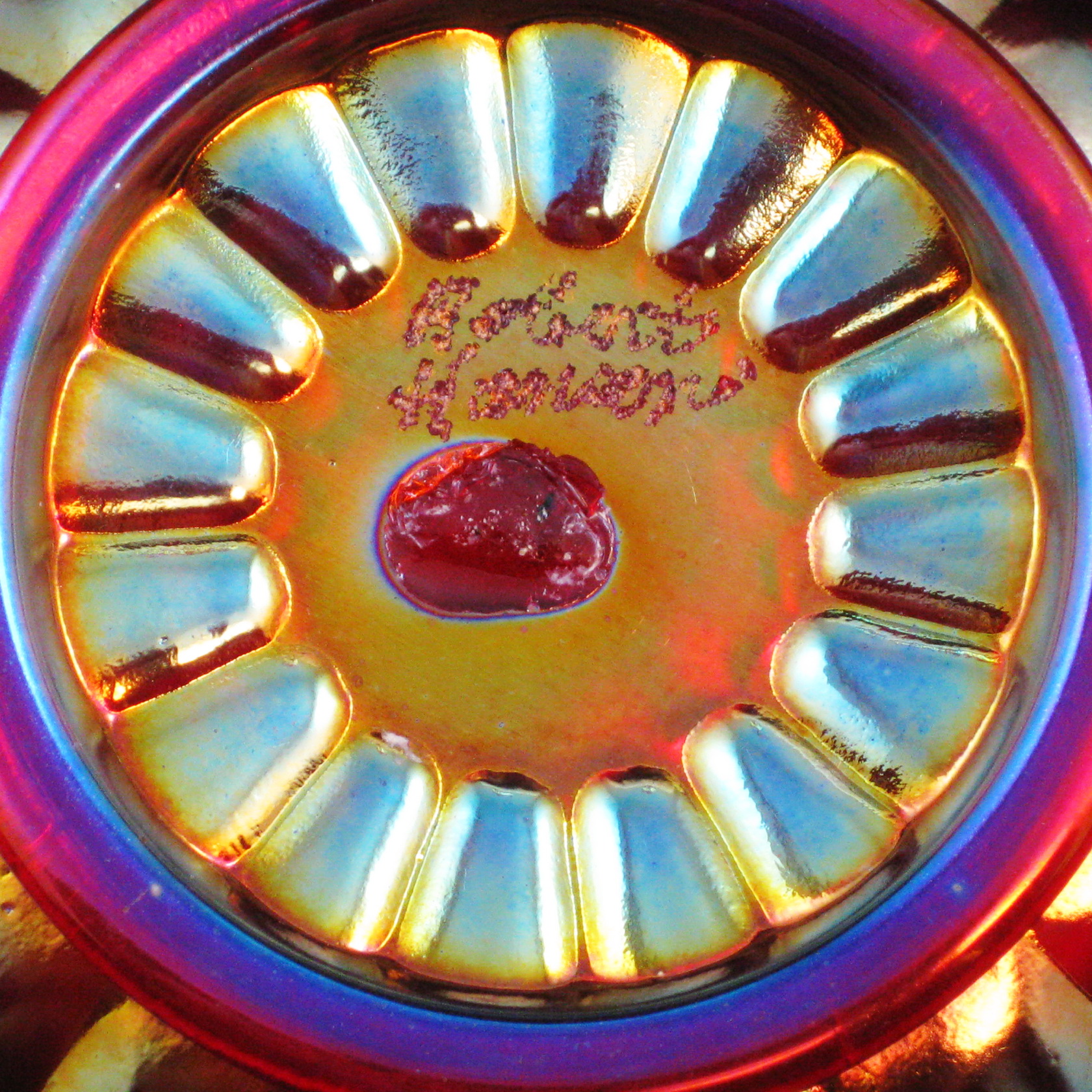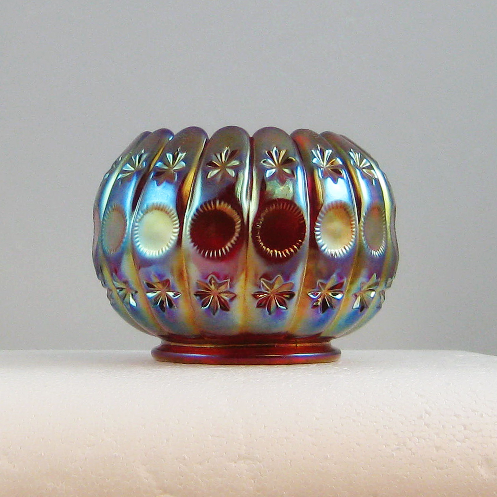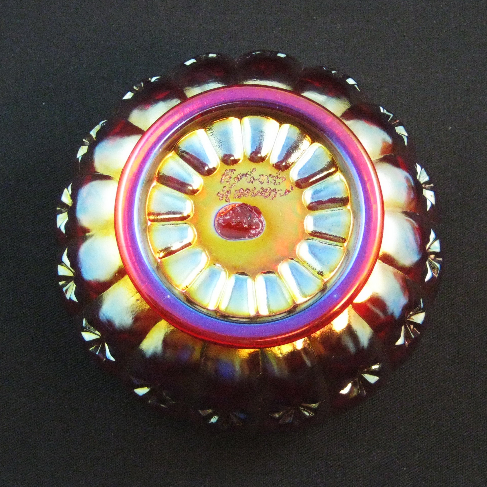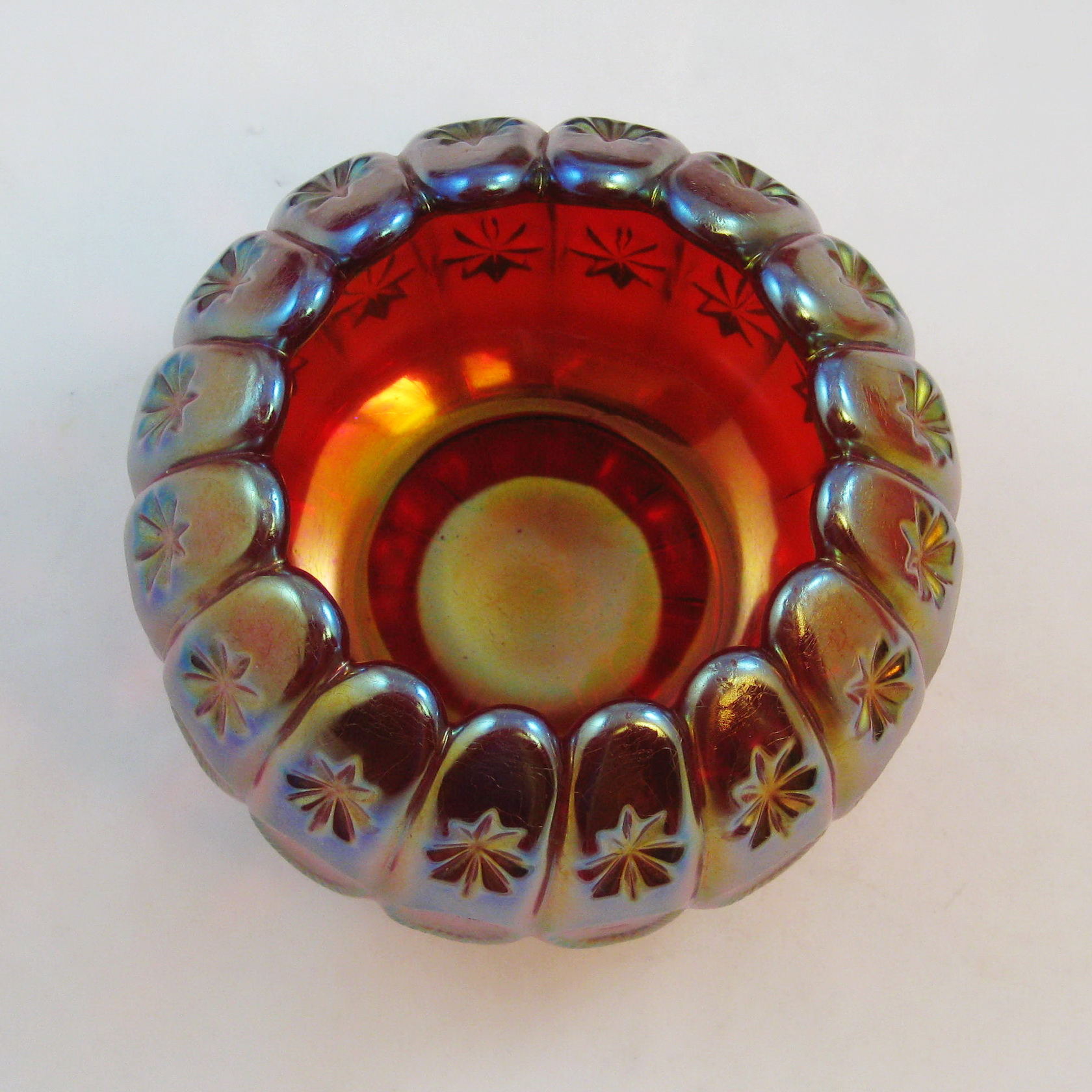 Robert Hansen Red Moon & Star Carnival Glass Rose Bowl