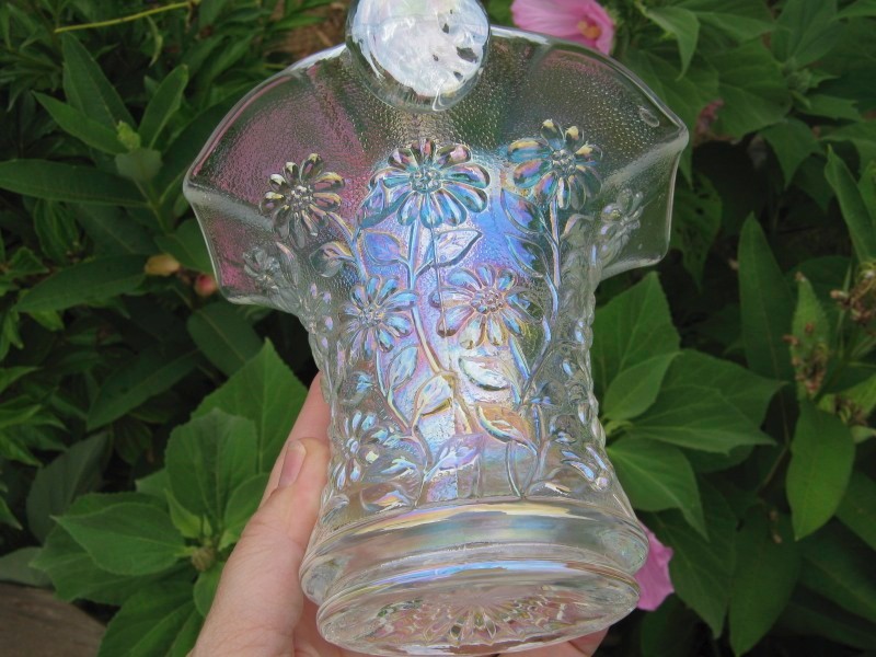 Here is a lovely, contemporary, WHITE DAISY BASKET made by Impeiral!!   The iridescence on this is GORGEOUS showing loads of pastel colors!!