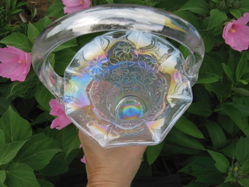 Imperial White Daisy Carnival Glass Whimsied Basket
